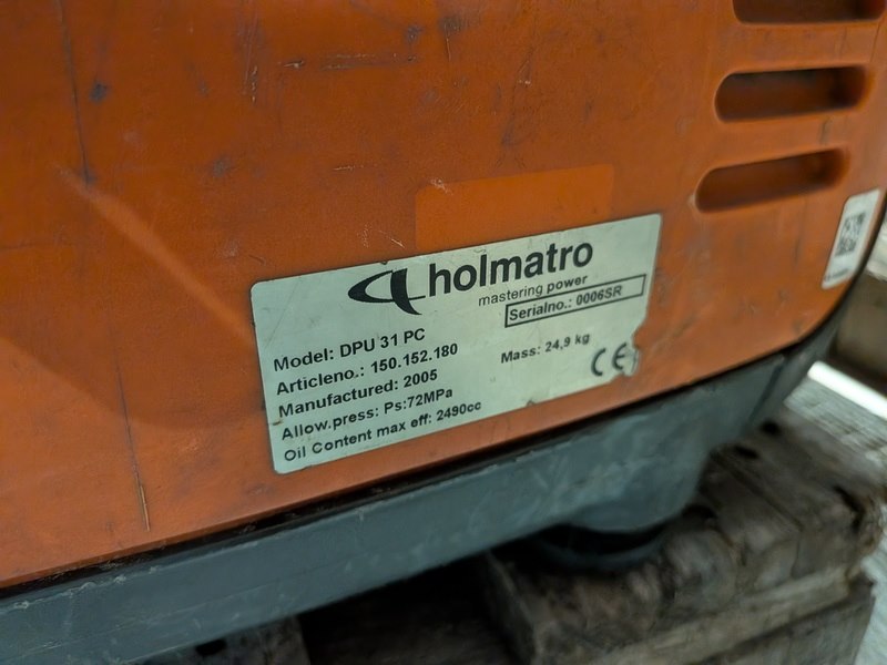 Merk: Holmatro Product: Set hydraulisch redgereedschap Specificaties: Bestaande uit: • holmatro DPU 31 PC duo-pomp, 2005 | 0006SR • holmatro SP 4240 C hydraulische spreider, 2009 | 197721 • holmatro CU 4050C NCT II hydraulische schaar, 2010 | 1084974HH • holmatro TR3350+ telescopische ram, 2003 | 100474 • holmatro RA3331+ telescopische ram, 2000 | 73356 • Hydrauliek slang