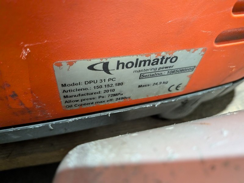 Merk: Holmatro Product: Set hydraulisch redgereedschap Specificaties: Bestaande uit: • holmatro DPU 31 PC duo-pomp, 2010 | 1085060HH • holmatro RA3321 telescopische ram, 1997 | 35930 • holmatro TR 4350 C telescopische ram, 2016 | 1279552HH • Hydrauliek slang