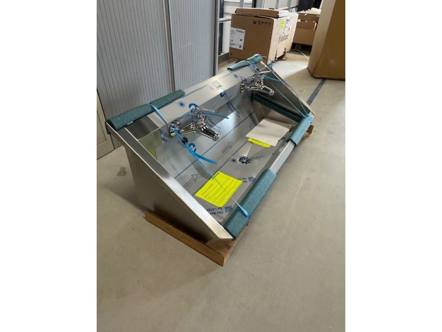 Product: Wastrog Materiaal: RVS Afmeting: bxdxh ca. 115x50x42cm Specificaties: met 2 kranen