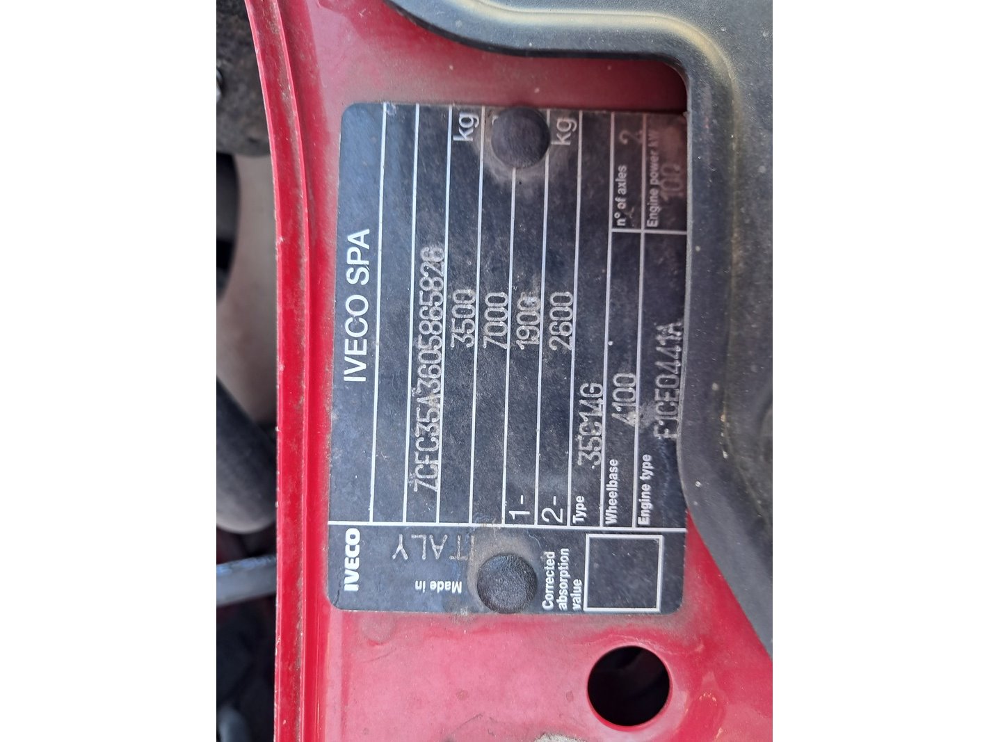 Merk: IVECO Product: Vrachtwagen BouwJaar: 2011 Specificaties: Basis kenmerken Kenteken: 6-VPJ-24 Chassisnummer (VIN) : 7CFC35A3605865826 Datum eerste toelating: 28 juni 2011 Vervaldatum APK: 1 juli 2026 Afgelezen tellerstand: 68.870 km Aantal sleutels: 2 Motor, Prestaties & Milieu Brandstof: cng Motorcode: F1CE0441A*A Aantal cilinders: 4 Cilinderinhoud: 2.998 cc Max. vermogen: 100 kW / 136 pk Transmissie: handmatig Max. koppel: 355 Nm Emissieklasse: 5