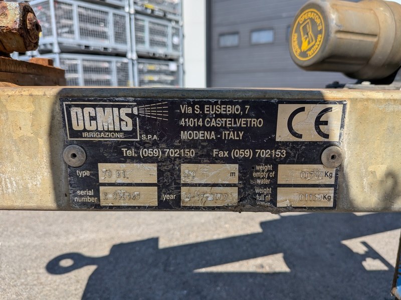 Merk: OCMIS Product: Irrigatieslanghaspel BouwJaar: 2009 Specificaties: Serienummer: E 290045 Slanglengte: 150 m Gewicht (leeg) : 744 kg Gewicht (gevuld) : 1.163 kg
