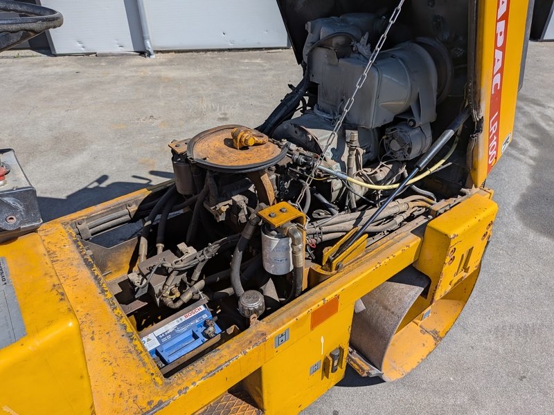 Merk: DYNAPAC Product: Tandemwals Specificaties: Gewicht: ca. 1.650 kg Afmetingen (LxBxH) : ca. 235 x 106 x 210 cm Walsbreedte: ca. 95 cm Motor: DEUTZ FU511 Vermogen: 12.8 kW Afgelezen tellerstand: 630 u.