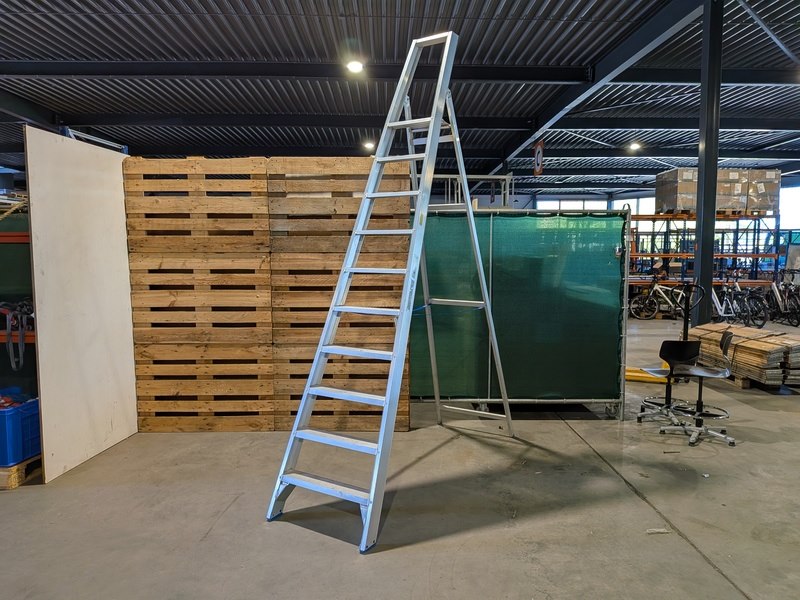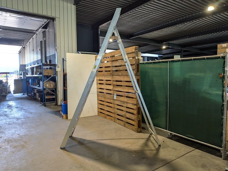Merk: SOLIDE Product: Bordestrap Specificaties: Platform/stahoogte: 2,5 m Transportlengte: 3,4 m Voetbreedte: 74 cm Spreidstand: 2,2 m Gewicht: 17 kg