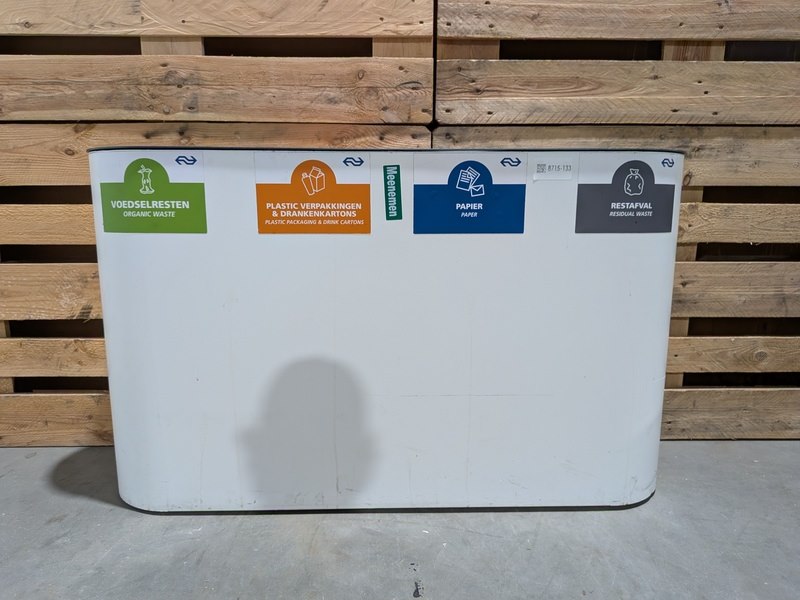 Merk: Lune Product: (NS materiaal) Afvalbak Specificaties: Afmetingen (BxDxH) : 120 x 30 x 71 cm Gewicht: 38 kg Totale capaciteit: max. 152 liter