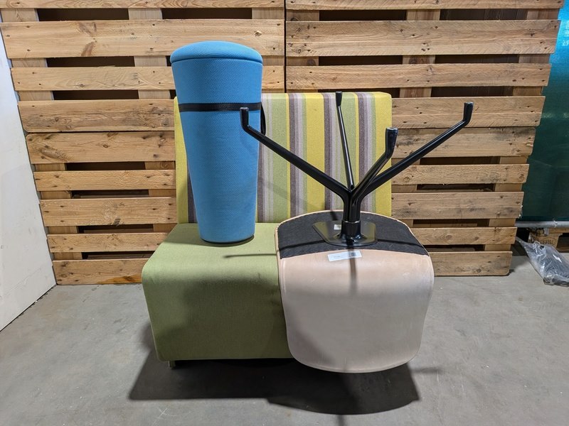Merk: HAY & Wilkhahn Product: (NS materiaal) 3x Zitmeubel Specificaties: Bestaande uit: • Modulaire bankmodule • HAY About a Chair eetkamerstoel • Wilkhahn Stand-Up balanskruk