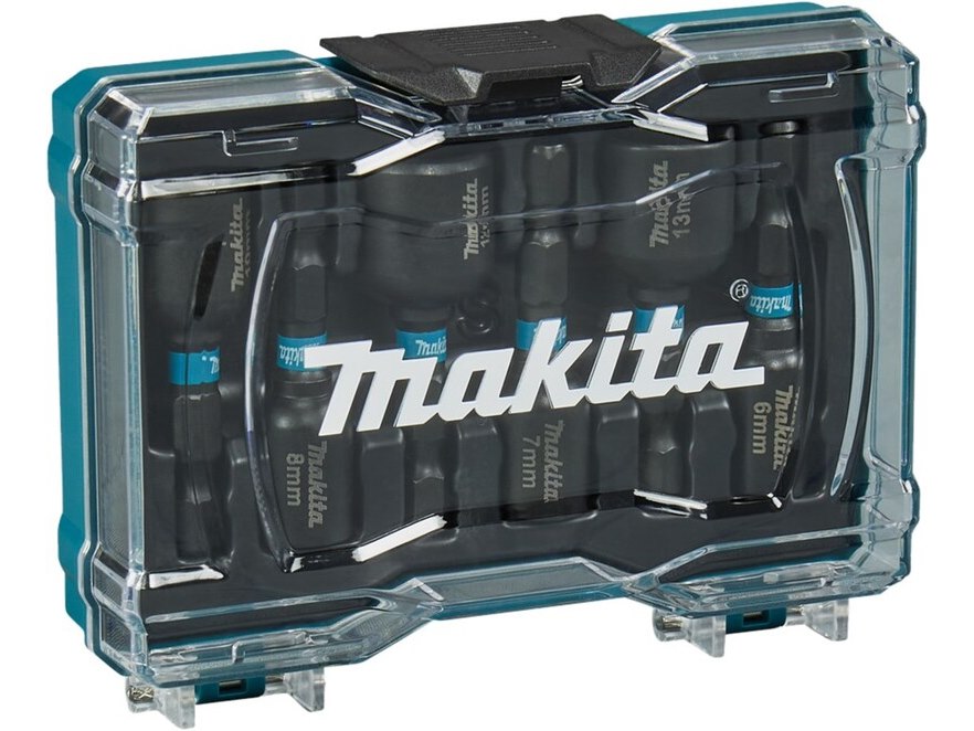 Merk: makita Product: 6-dlg Doppen set voor accuboormachine. Afmeting: maten; 6,7,8,10,,12,13 mm Conditie: nieuw Specificaties: in afsluitbaar koffertje