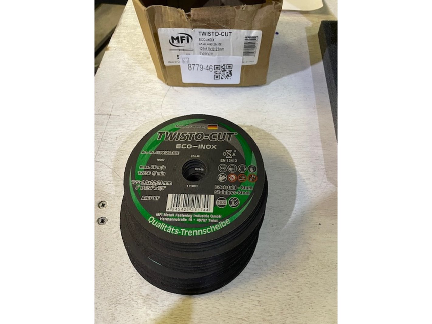 Merk: Twisto-Cut Product: Doorslijpschijven Materiaal: 125 x 1,0 mm Conditie: nieuw Specificaties: per 5.