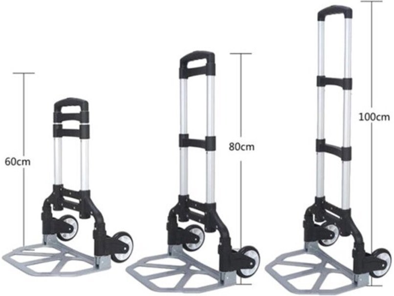 Merk: JR-Ladders Product: Trolley/steekwagen Materiaal: Aluminium Afmeting: hoogte uitgesch 1m Conditie: nieuw Specificaties: volledig in/uitklapbaar. Incl. Bindelastiek