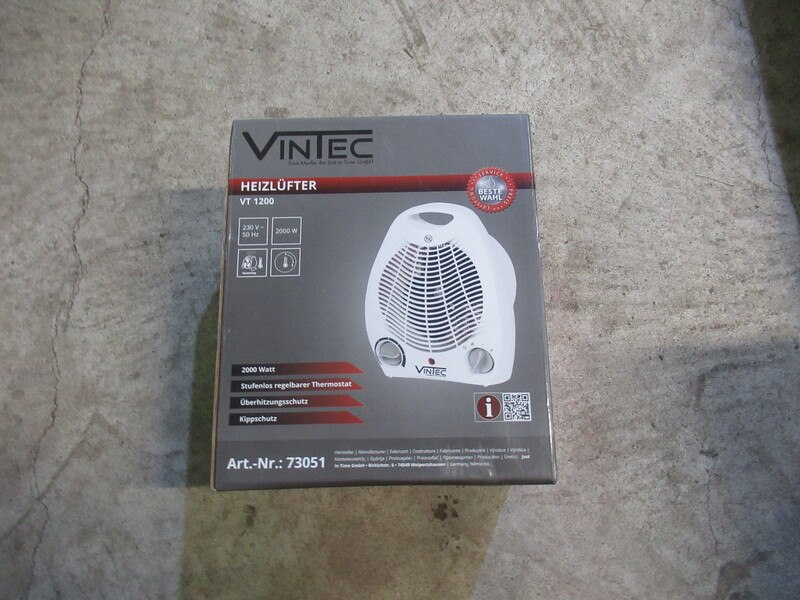 Merk: Vintex Product: Ventilatorkachel Conditie: nieuw Specificaties: Max 2000 watt, omval/oververhittings-beveiligt