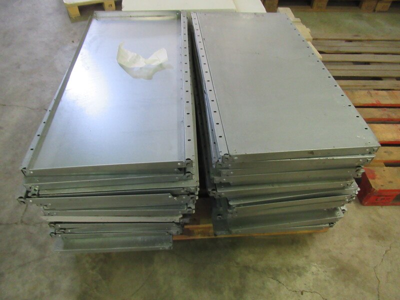 Merk: Dexxion Product: Partij Legborden Materiaal: Aluminium Afmeting: 100x50x3 cm Conditie: gebruikt Specificaties: pallet met ca 60 Legborden voor magazijnstelling