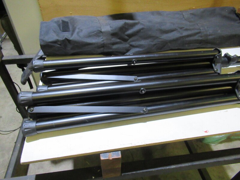 Product: Uitschuifbare statieven Afmeting: uischuifbaar ca 3 m Conditie: gebruikt Specificaties: v.v.; in opbergtas, driepoot, voor camera's/telescopen…enz.