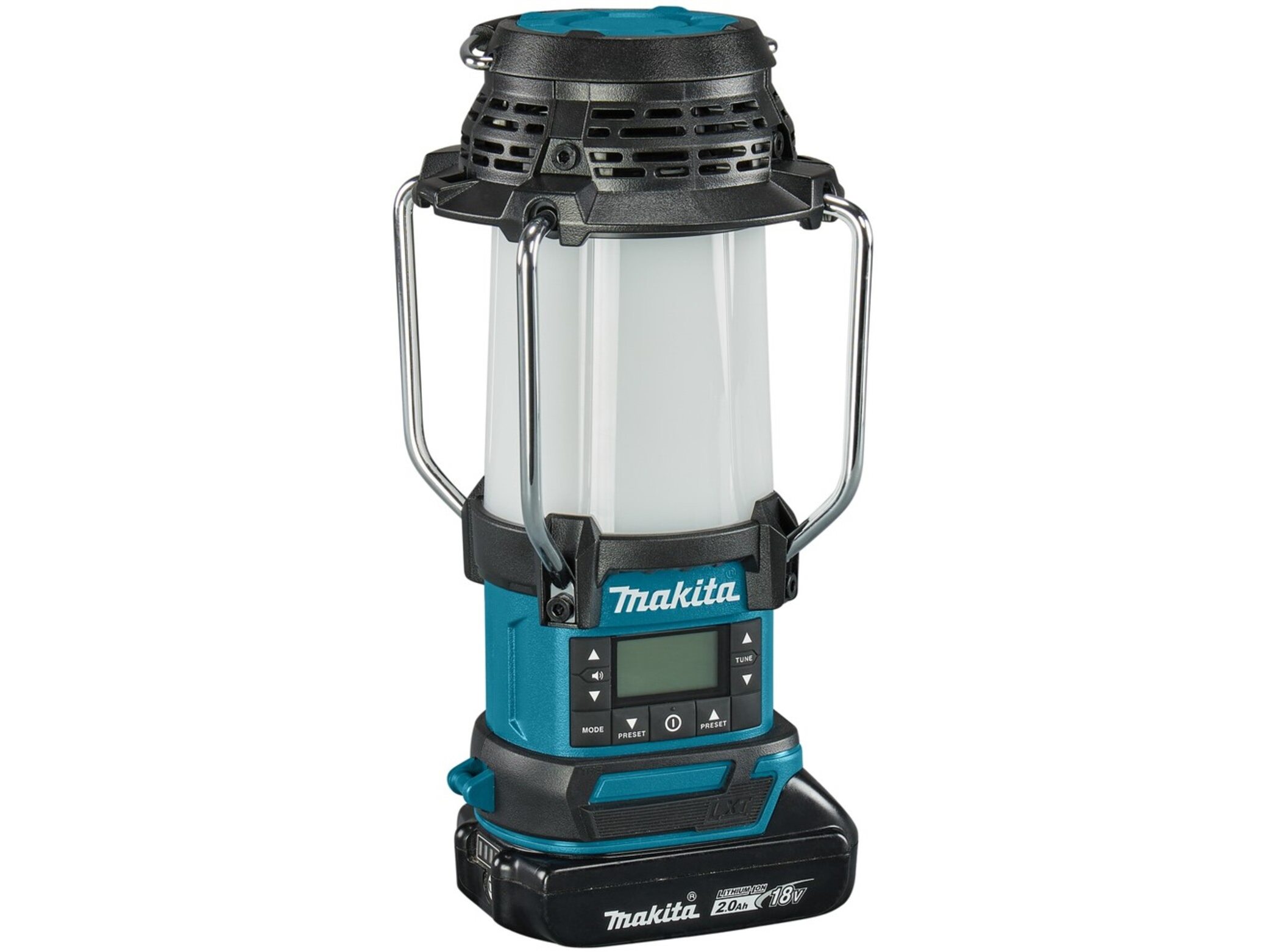 Merk: Makita Product: Accu radio/campinglamp Conditie: nieuw Specificaties: 14,4-18V lamp v.v.; 2 standen, ex accu/oplader