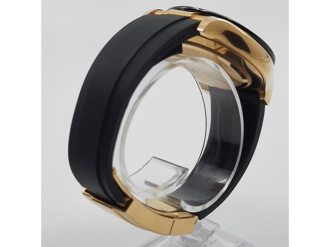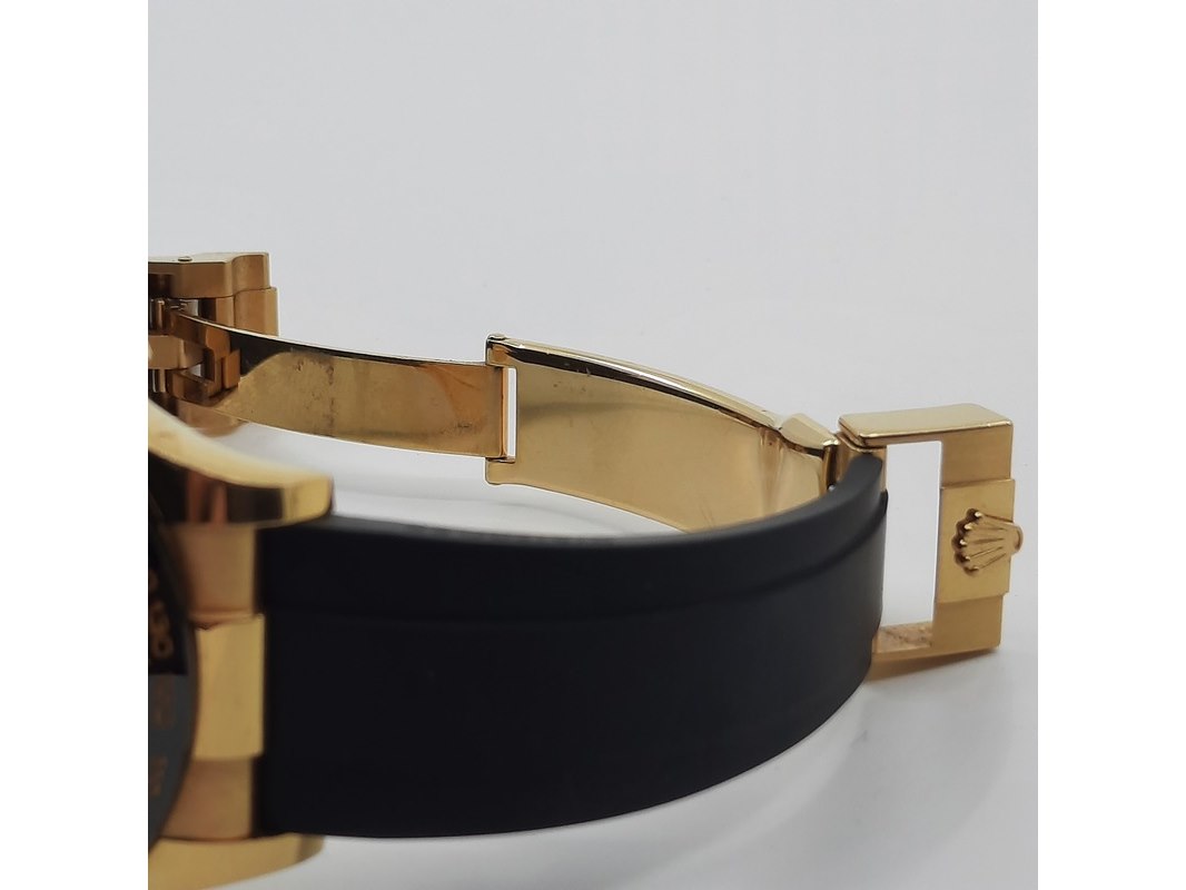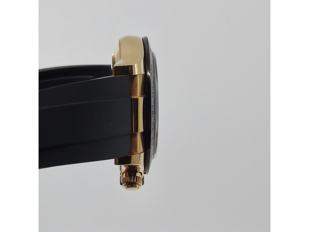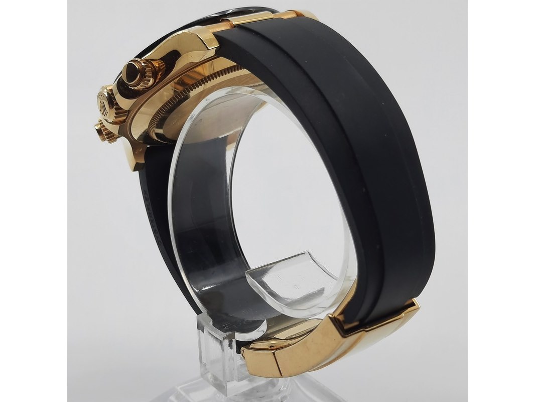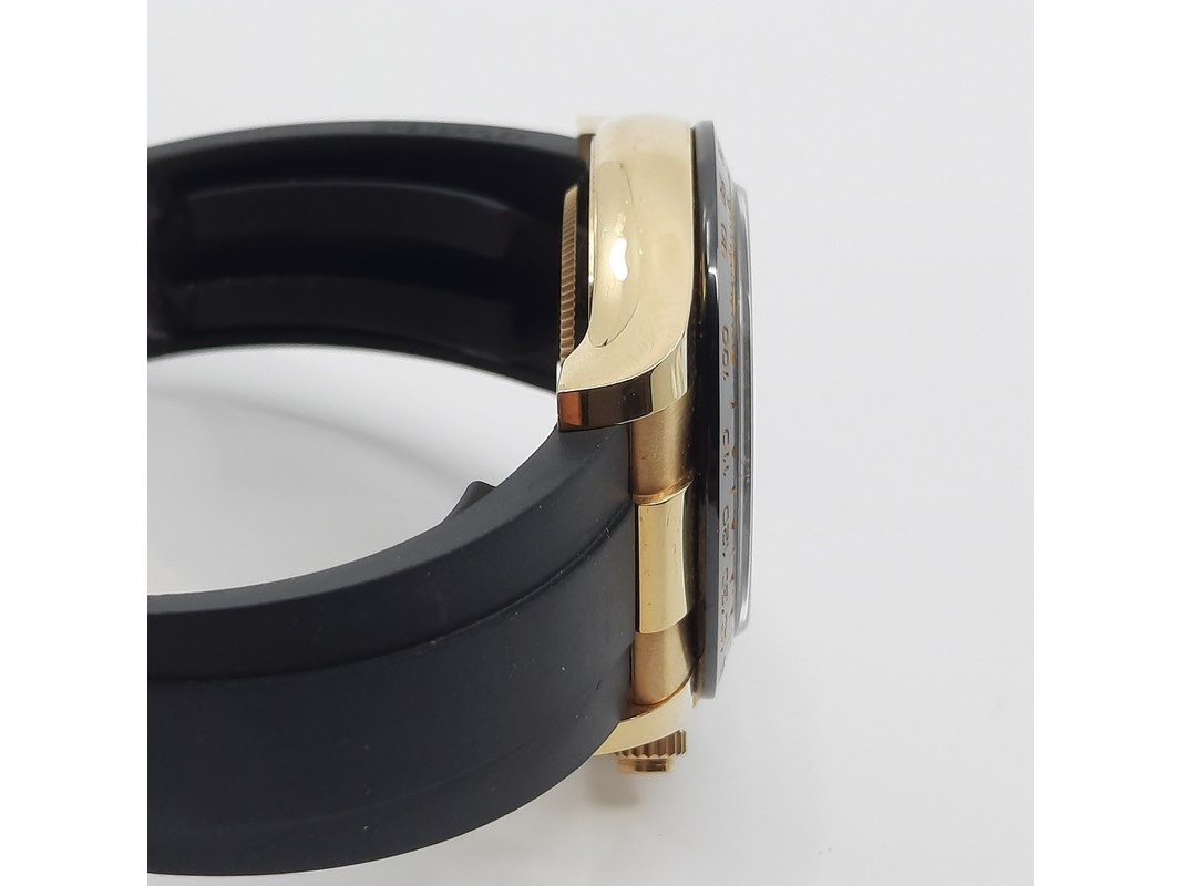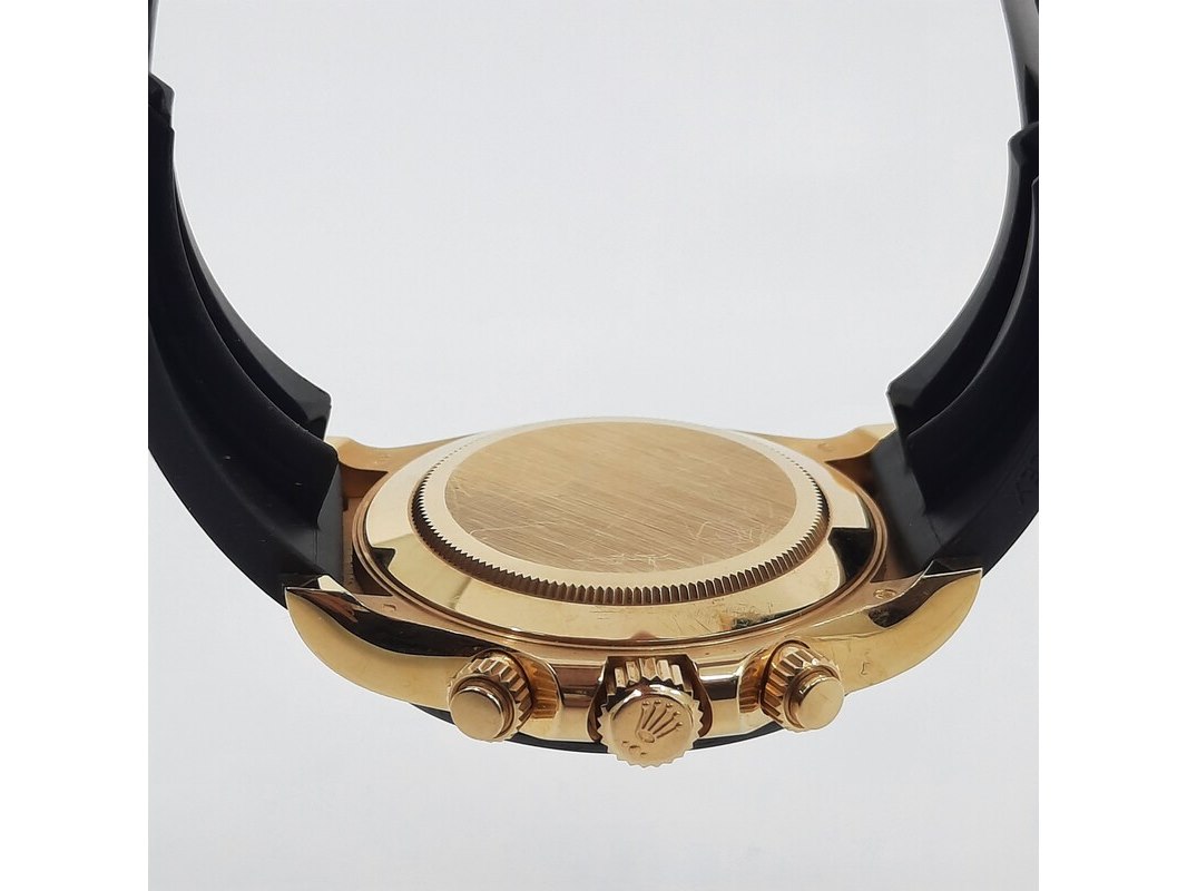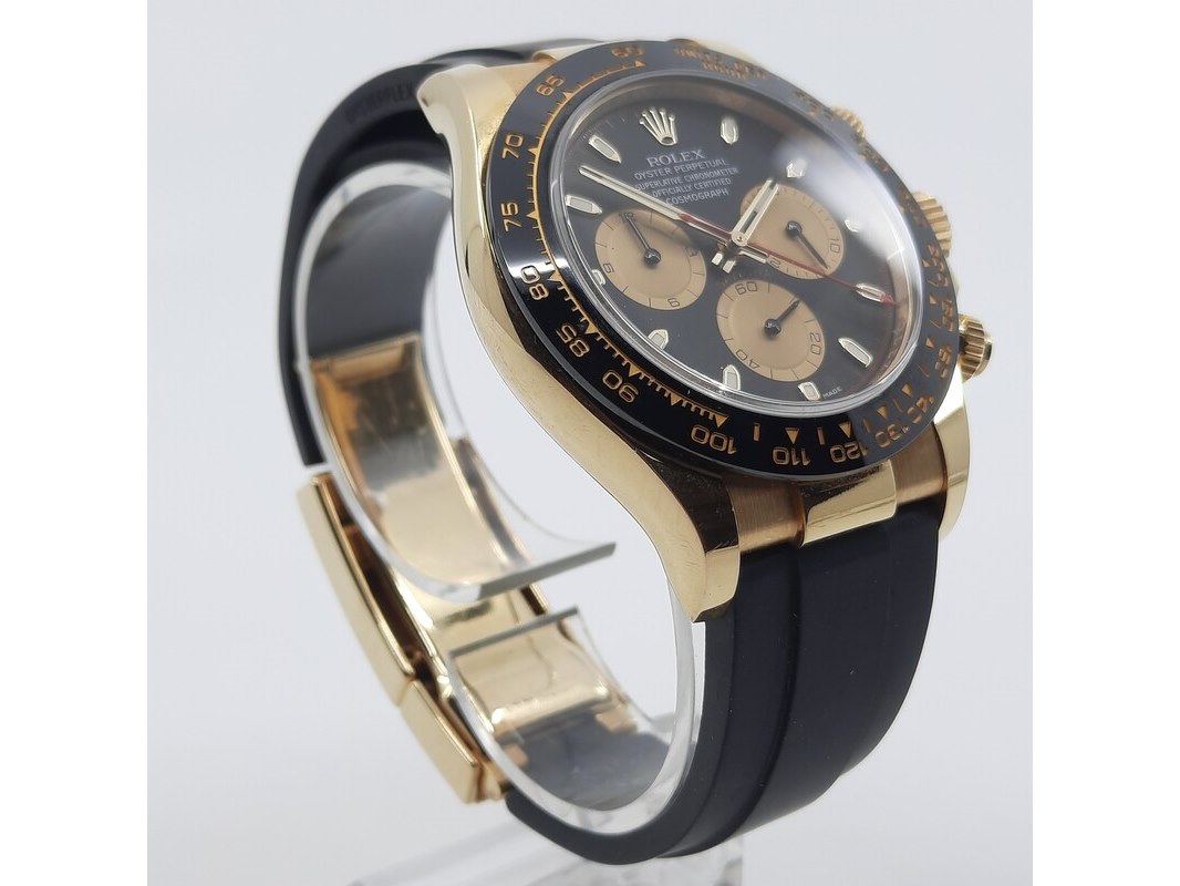 Merk: Rolex Product: Heren polshorloge Conditie: gebruikt Specificaties: Een 18 karaats geelgouden heren polshorloge, Rolex Daytona 116518LN. Met zwarte keramische lunet, tachymeterindex, zwarte wijzerplaat met drie doré registers, lijn index, rode secondewijzer, automatisch uurwerk, kaliber 4130 en rubber band met geelgouden sluiting. Inclusief doos en certificaat.