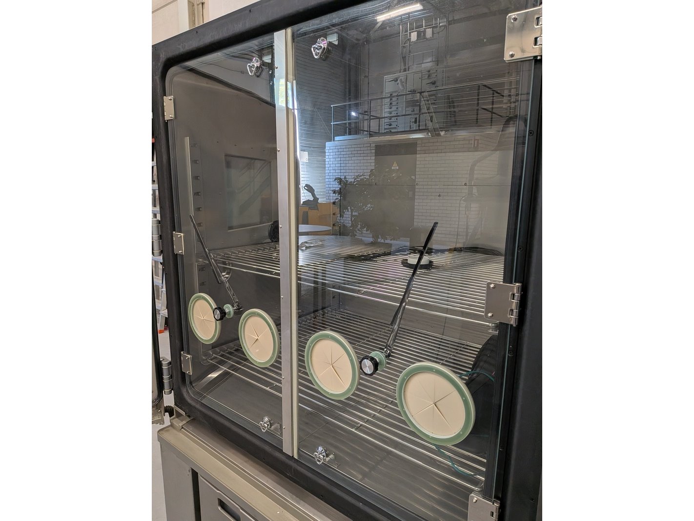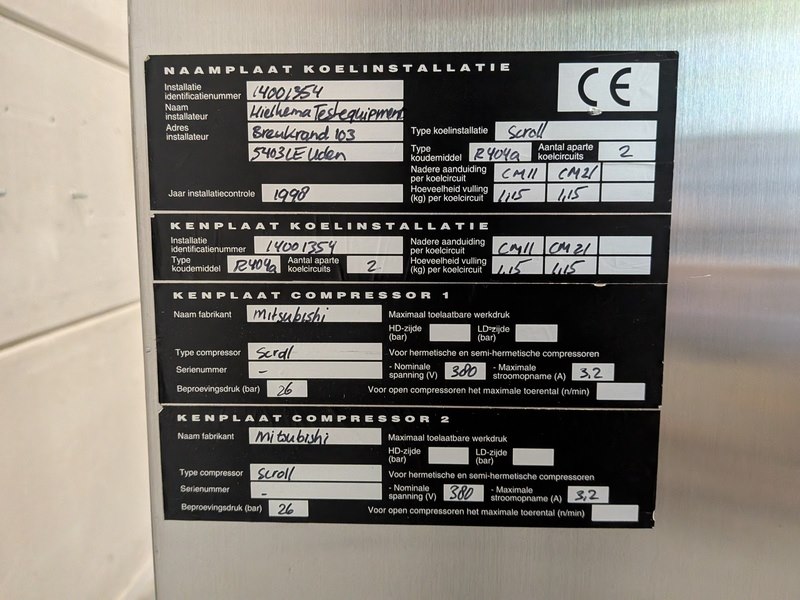 Merk: Tabai Espec, Accretech Product: Temperatuur en vochtigheidskamer Afmeting: hxbxd ca. 182x141x120cm BouwJaar: 1998 Specificaties: 380V, afgelezen urenstand 1239, eigen gewicht ca. 540 kilo, serienummer 14001354 werkend weggezet
