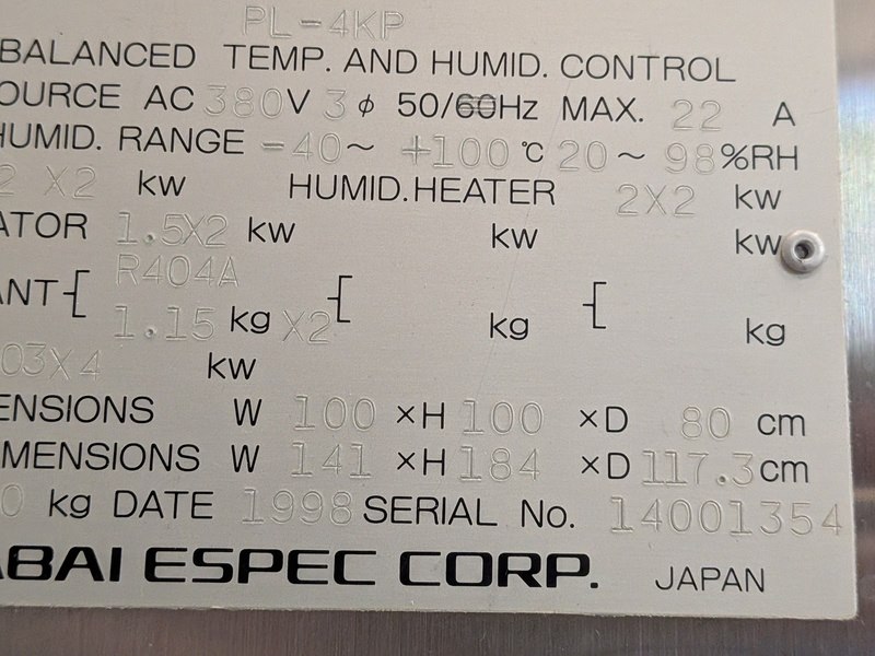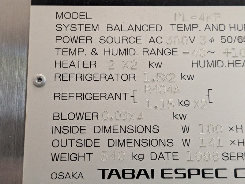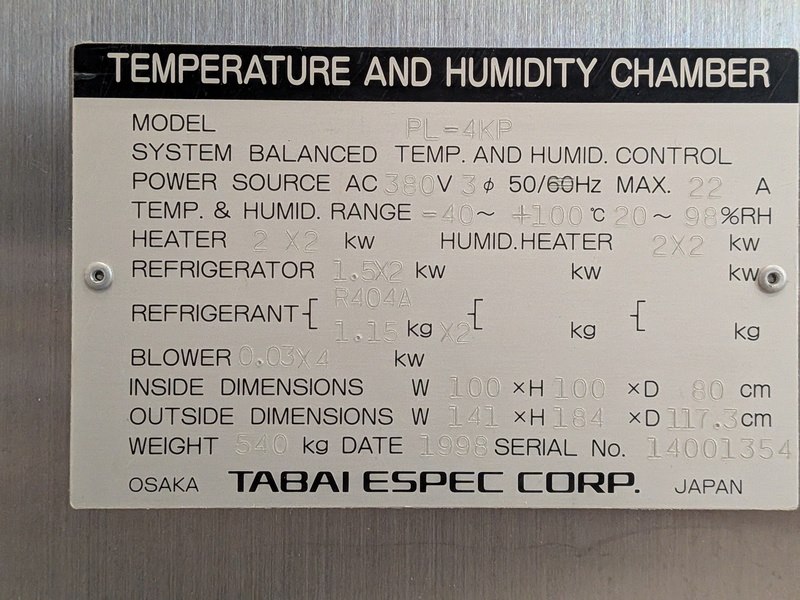 Temperatuur en vochtigheidskamer, tabai espec, accretech, pl-4kp, 1998