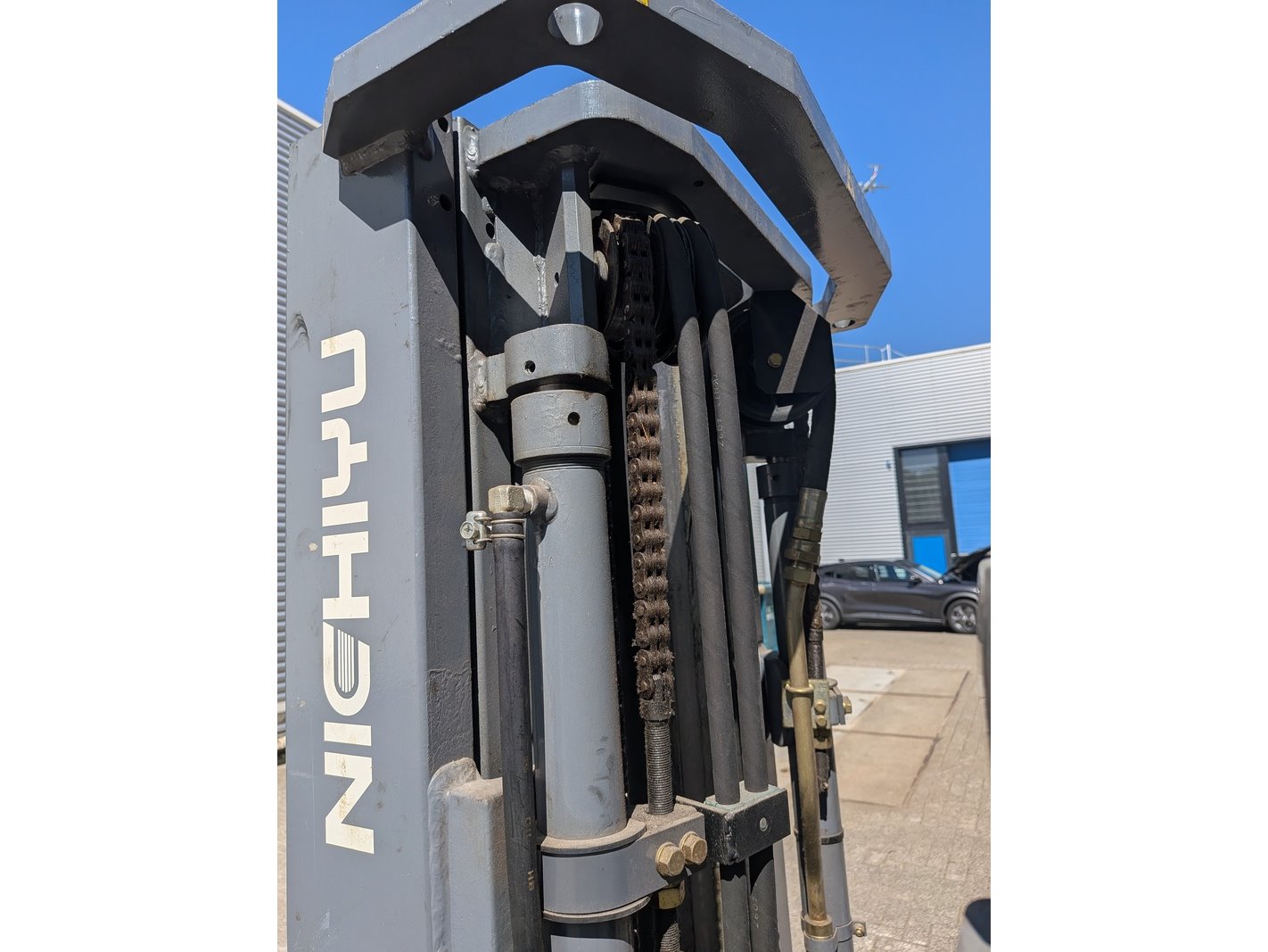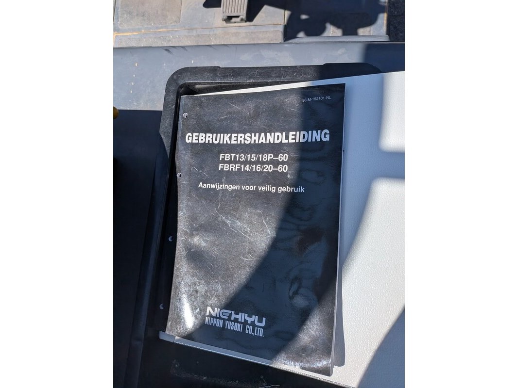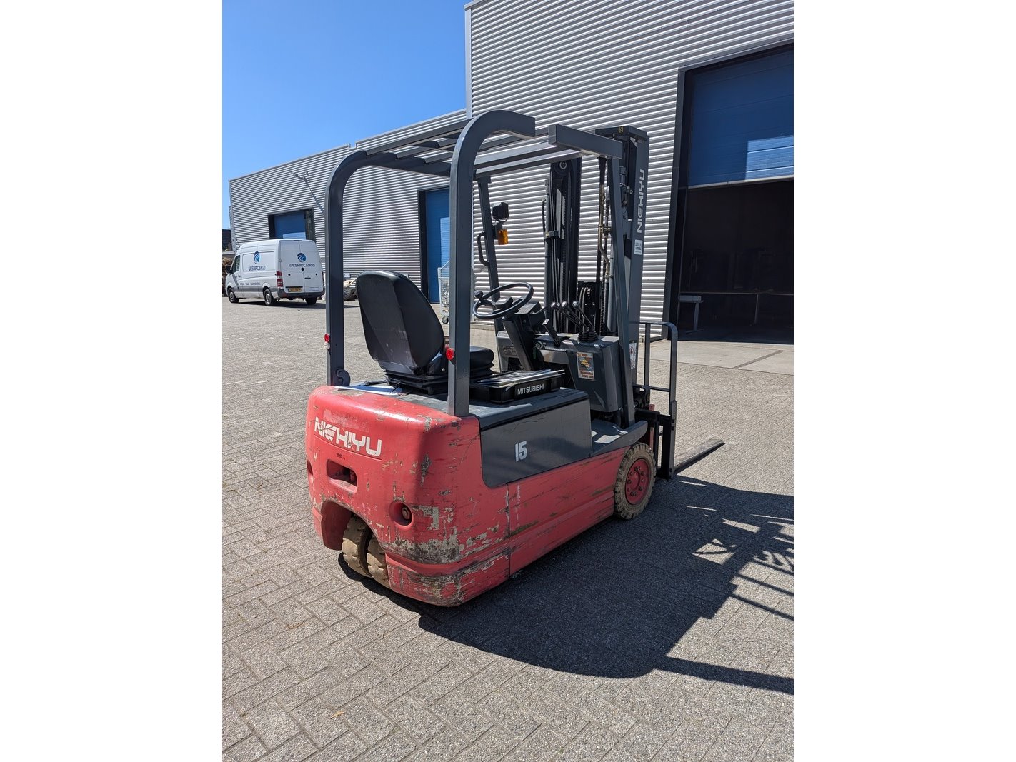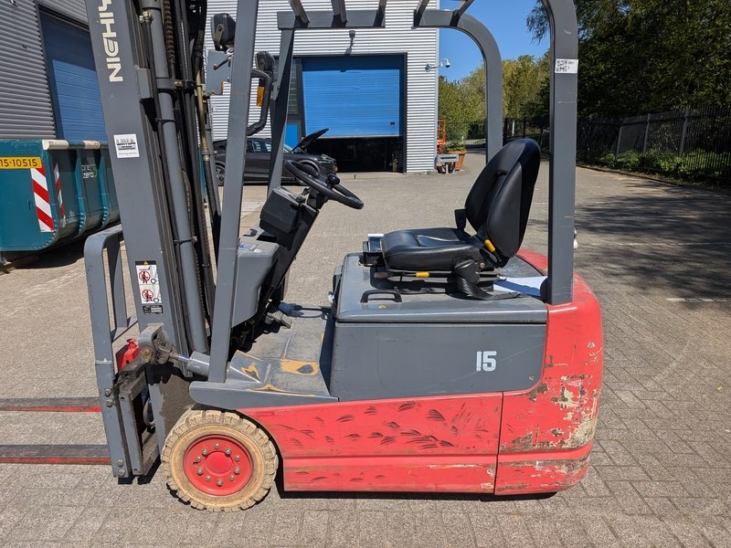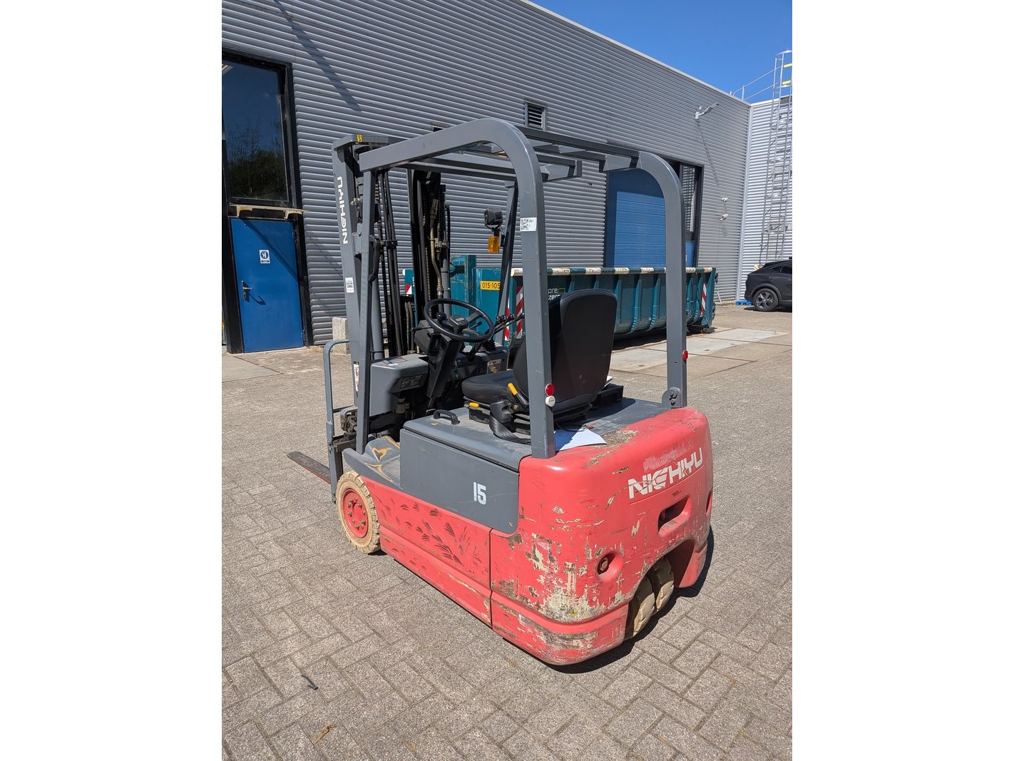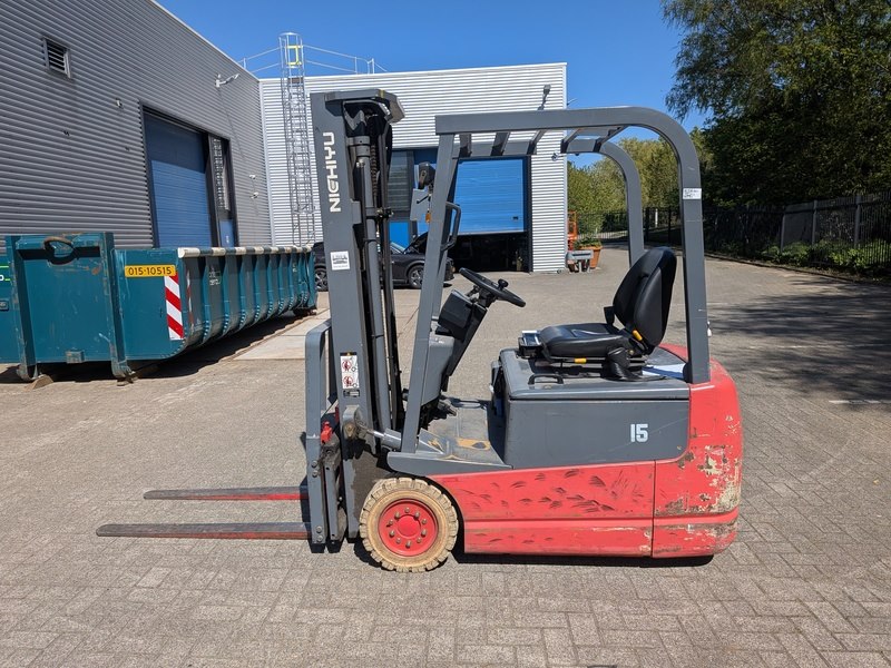 Merk: Nichiyu Product: Elektrische heftruck Afmeting: max 1500 kilo BouwJaar: 1998 Specificaties: Geen kenteken, afgelezen urenstand 1046, doorrijhoogte ca. 210cm, free lift, 3-delige mast, max hefhoogte ca. 470cm, lepellengte ca. 115cm, eigen gewicht ca. 3460 kilo, inclusief lader Let op! Heftruck wordt gebruikt tijden de afgifte dag en nadien door opdrachtgever voor opruim werkzaamheden Afgifte van deze kavel is op 29-5-2026 tussen 9:00 en 10:00uur Video https://youtu.be/PsLKHDGmhFU