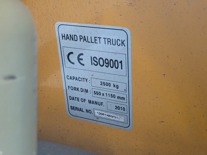 Merk: Irion Product: Palletwagen Afmeting: max 2500 kilo BouwJaar: 2010 Specificaties: lepellengte ca. 115cm