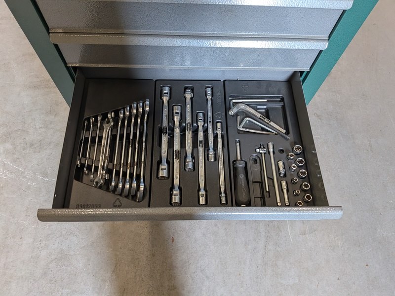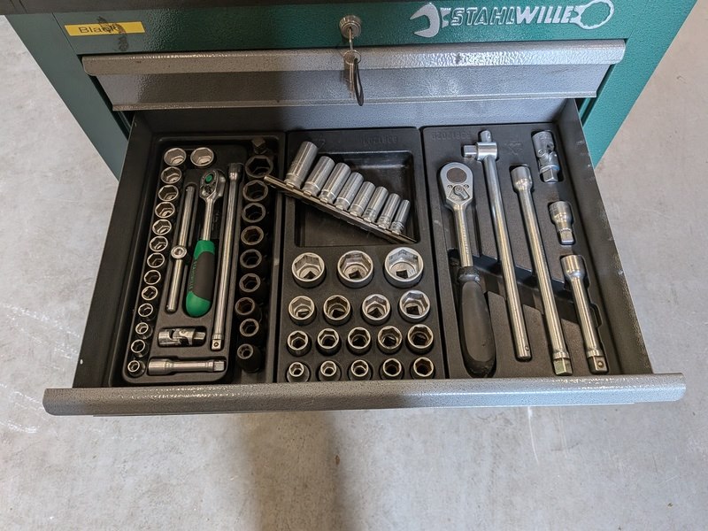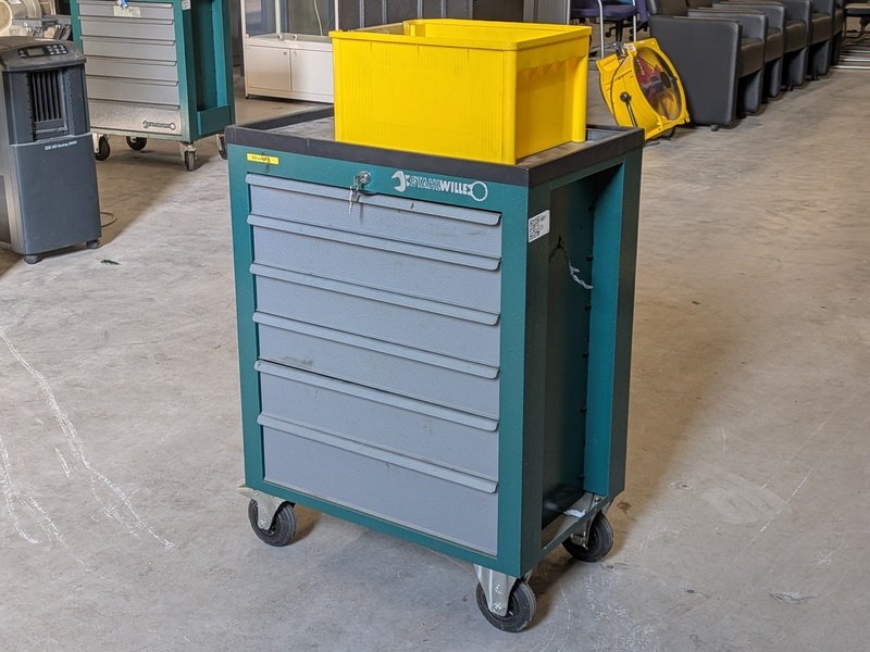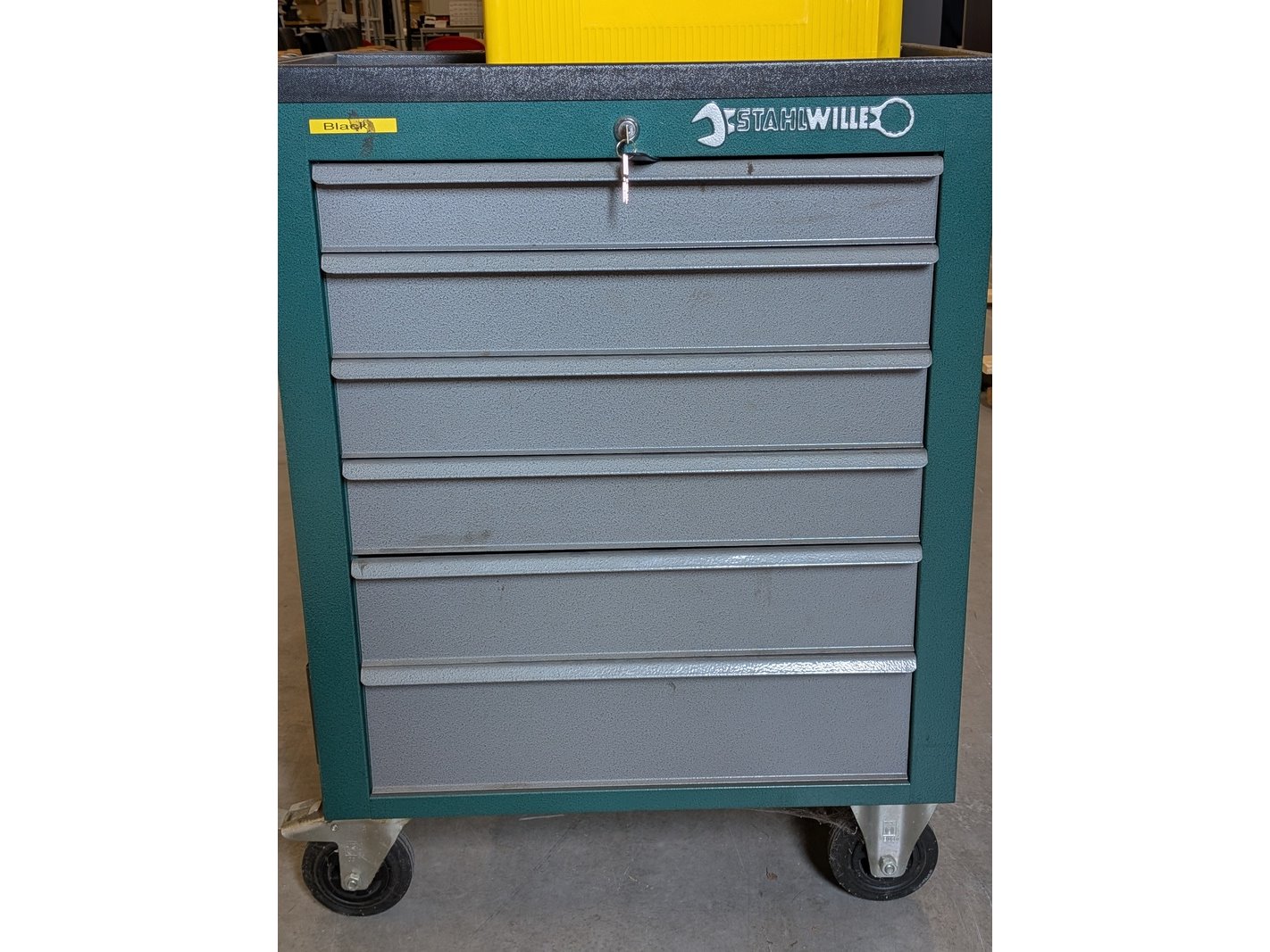 Merk: Stahlwille Product: Gereedschapswagen met inhoud Afmeting: hxbxd ca. 92x68x45cm Specificaties: inhoud: schroevendraaiers, steek-ringsleutels, doppenset, diverse tangen, hamers etc.