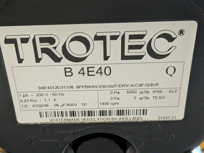 Merk: Trotec Product: Ventilator Specificaties: 230V