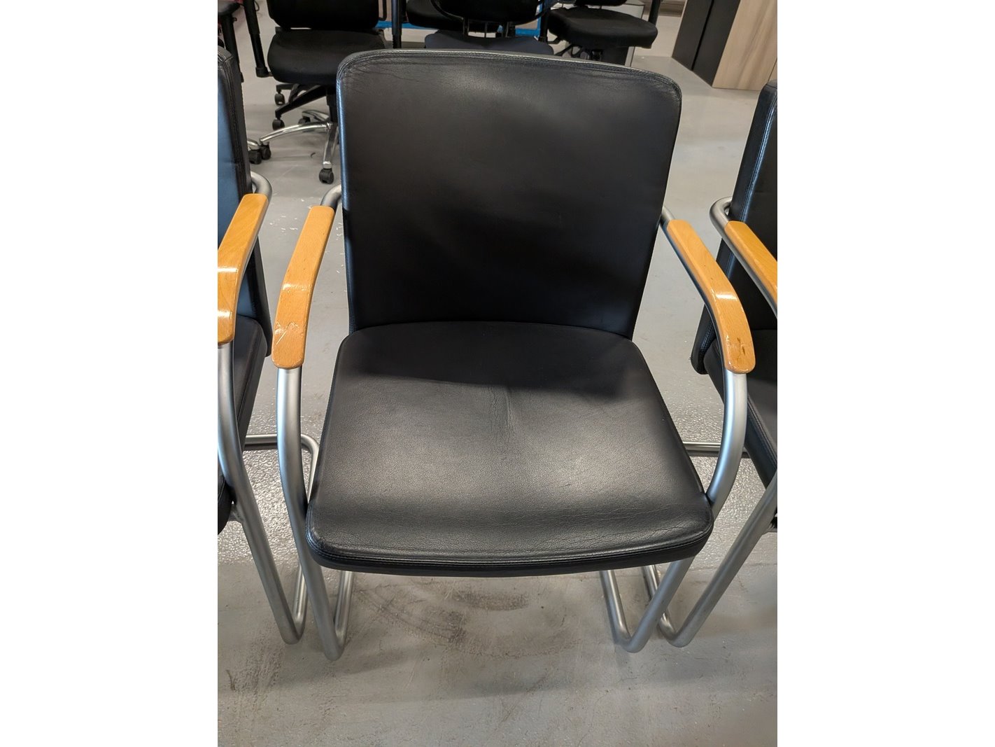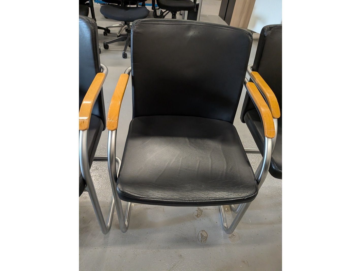 Product: Vergaderstoel Materiaal: lederlook Afmeting: hxbxd ca. 85x56x55cm, zithoogte ca. 47cm