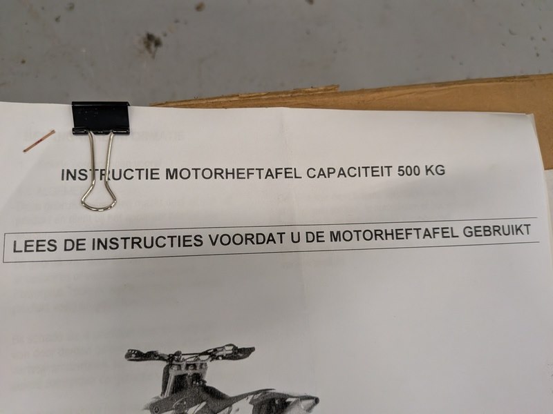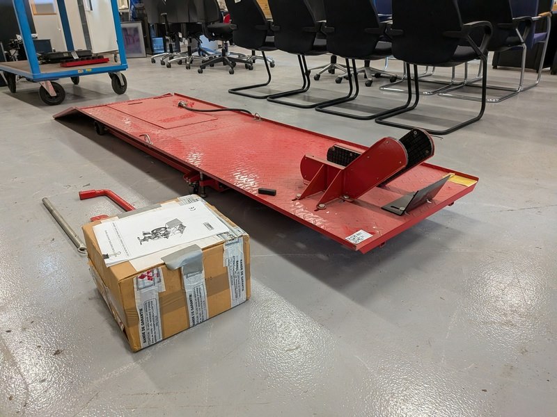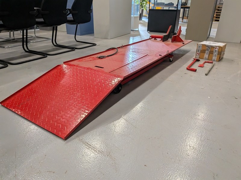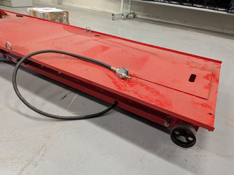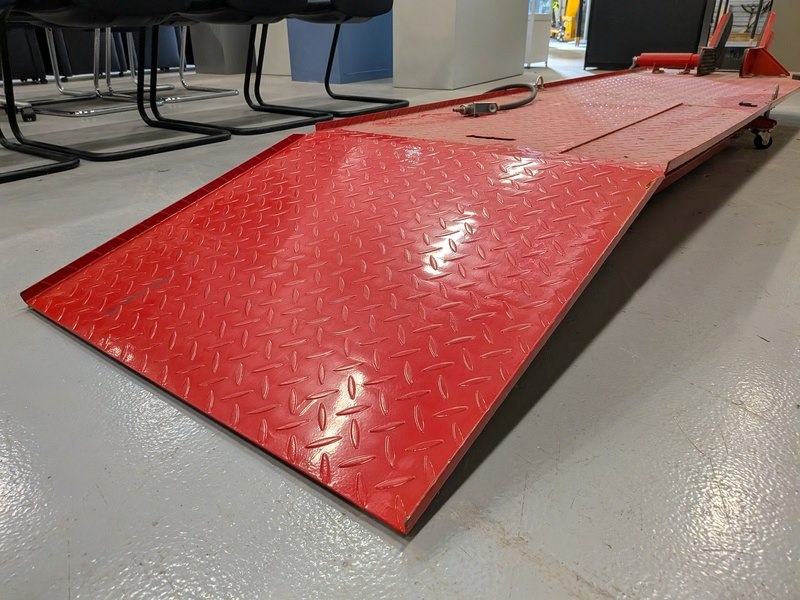 Merk: Powerplus Product: Pneumatische motor heftafel Afmeting: plateau lxb ca. 220x68cm