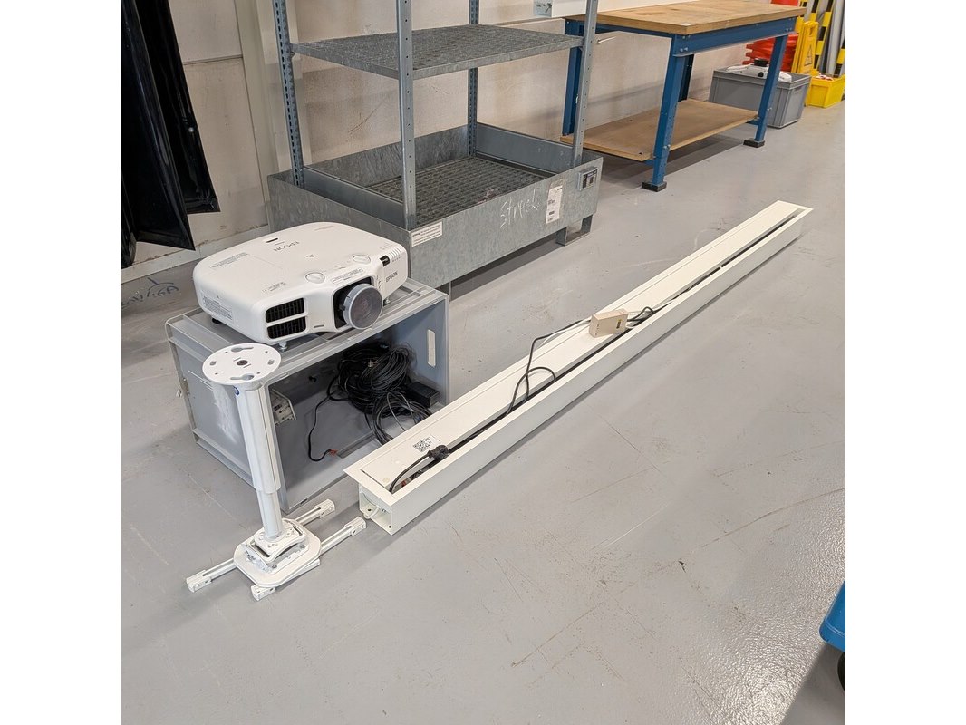 Merk: Epson Product: Beamer met projectiescherm Specificaties: breedte scherm ca. 240cm