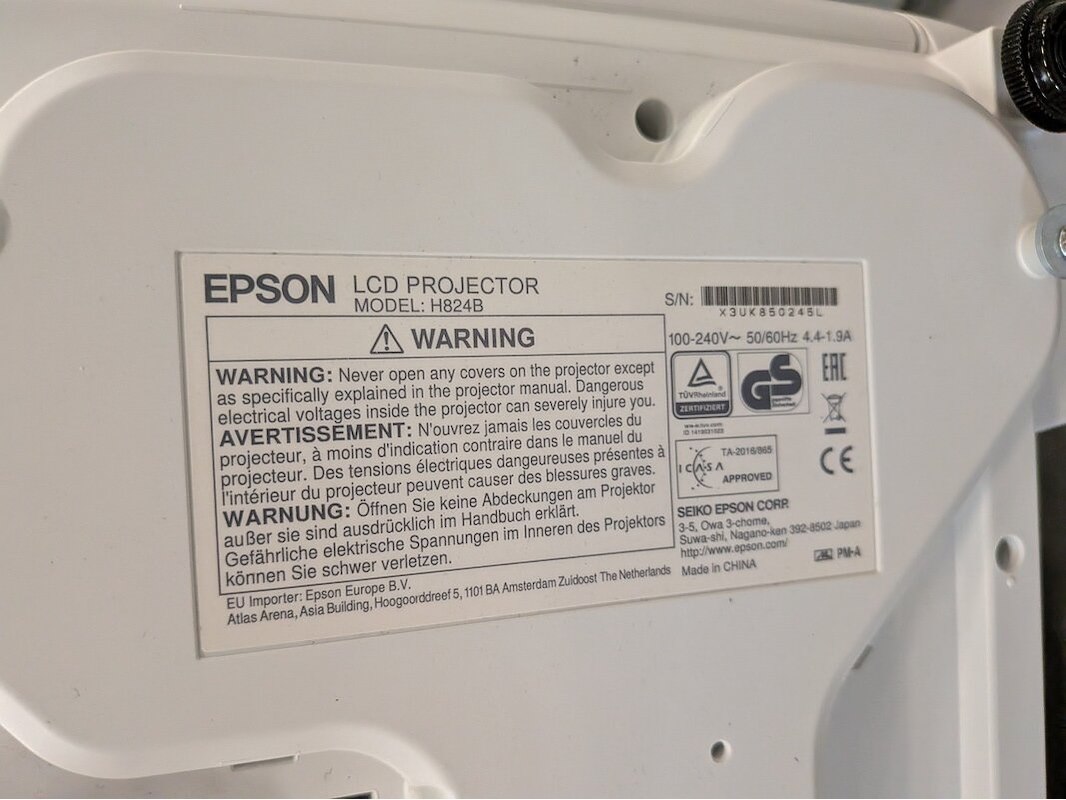 Merk: Epson Product: Beamer met projectiescherm Specificaties: breedte scherm ca. 240cm