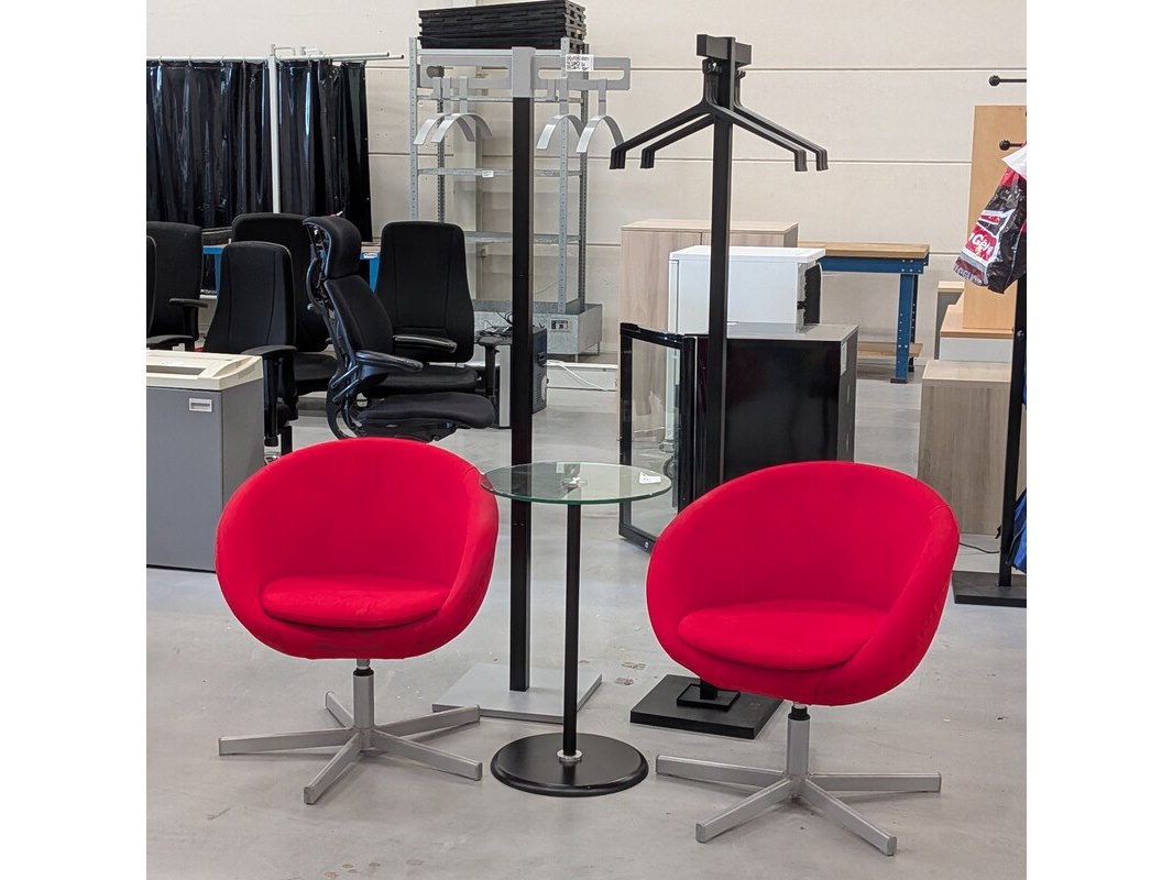 2x ontvangststoel met bijzettafel en 2x kapstok