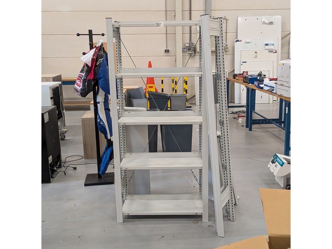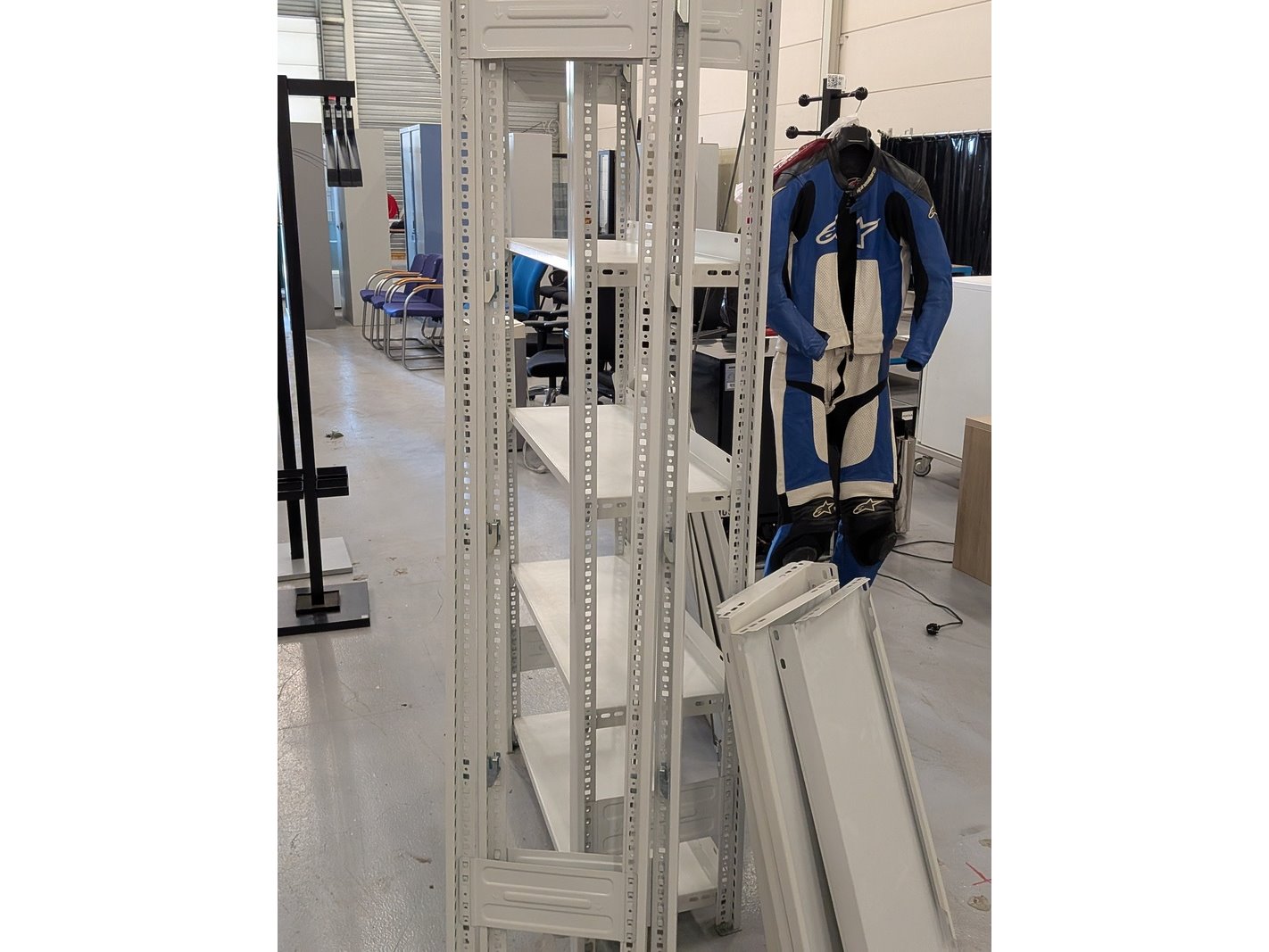 Product: Metalen stelling Afmeting: hxbxd ca. 175x82x34cm Specificaties: Op te bouwen tot een geheel van 3 stellingen.