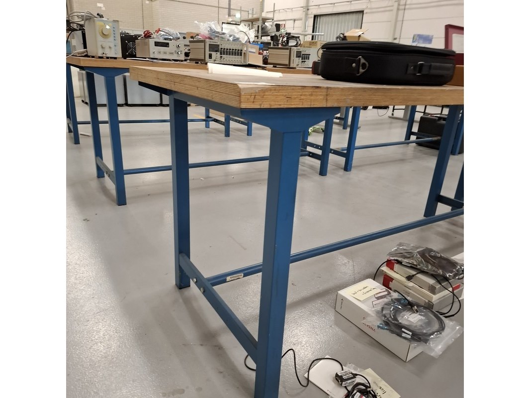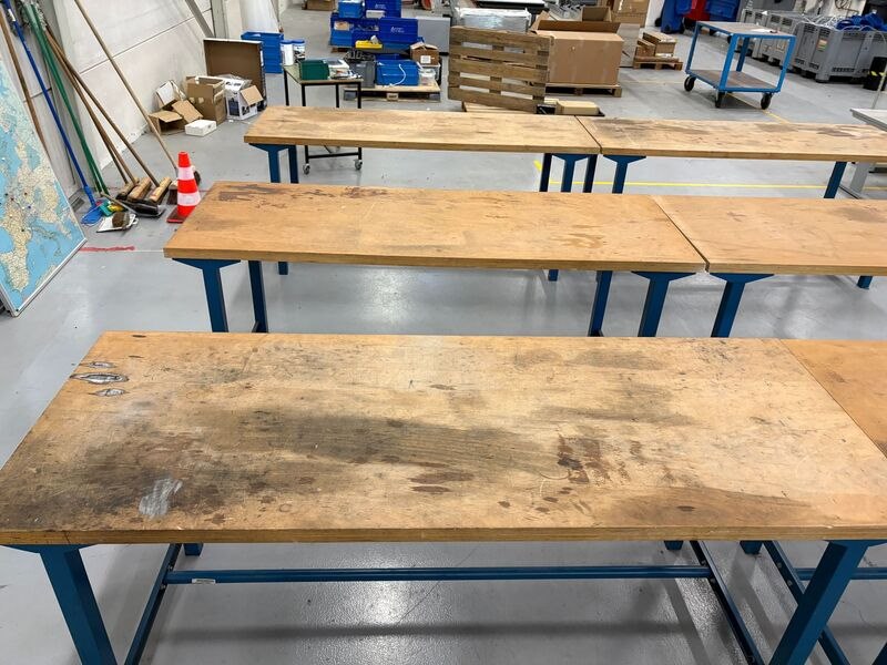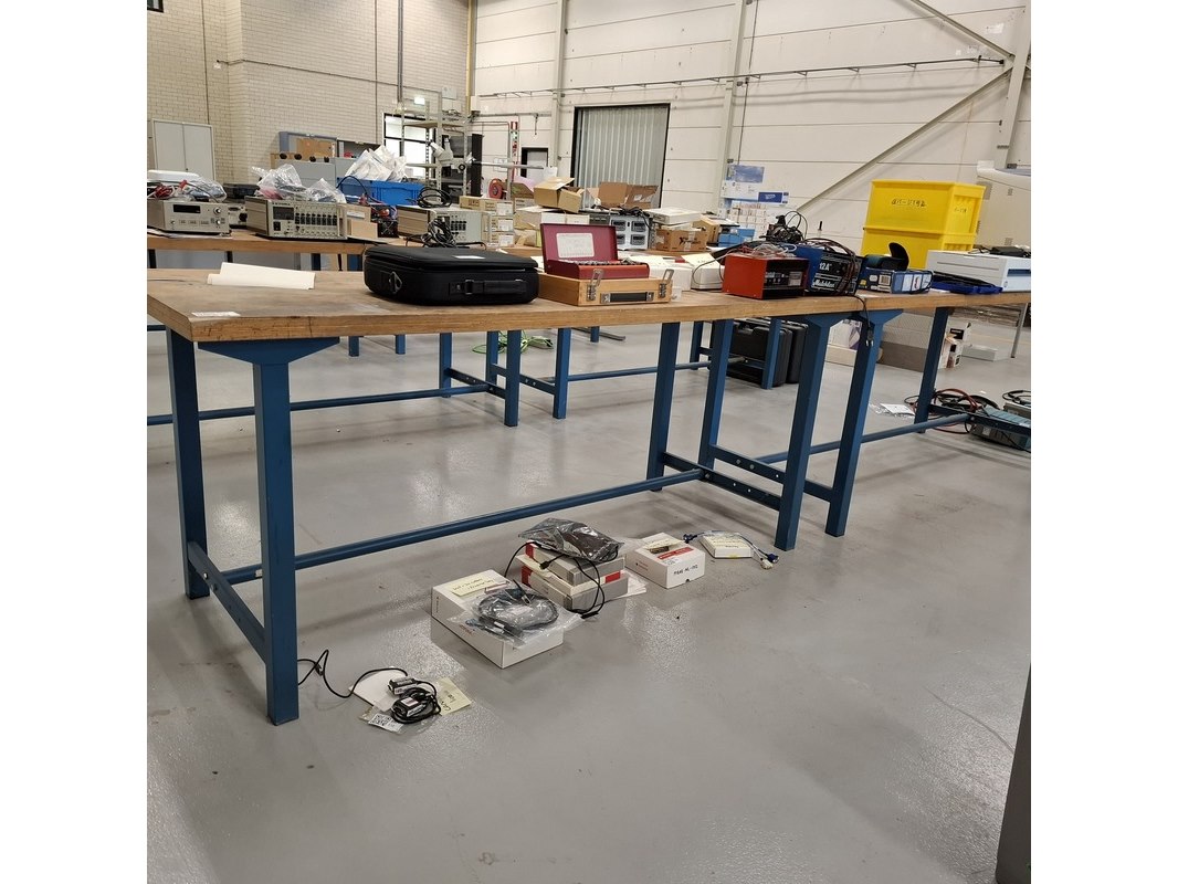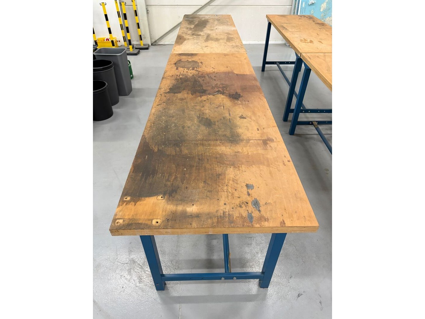 Product: Werkbank Materiaal: metalen frame, houten blad Afmeting: lxbxh ca. 200x75x86 Specificaties: Exclusief zichtbare randzaken