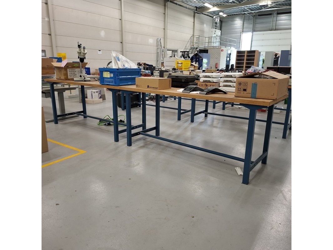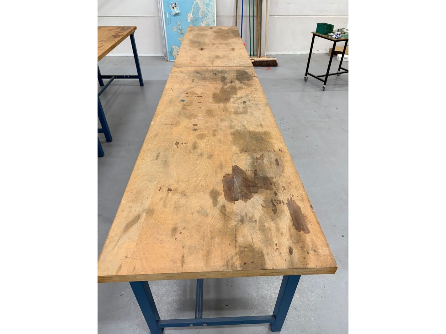 Product: Werkbank Materiaal: metalen frame, houten blad Afmeting: lxbxh ca. 200x75x86 Specificaties: Exclusief zichtbare randzaken