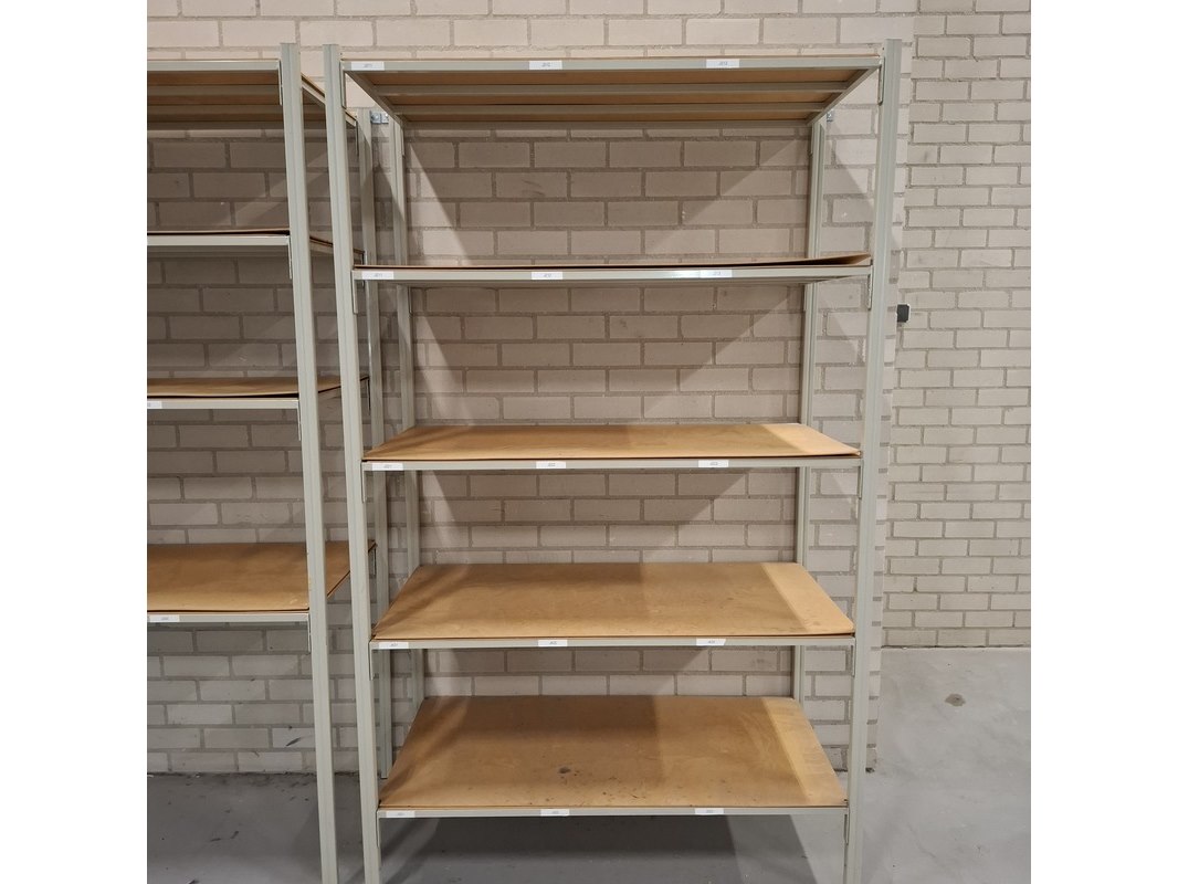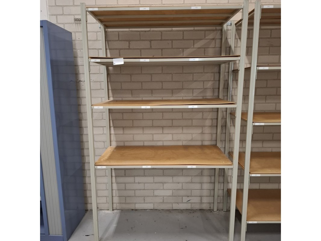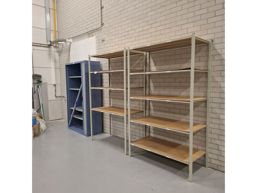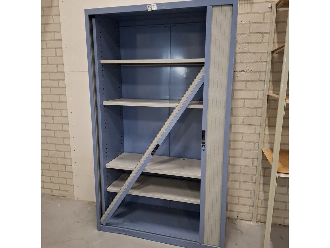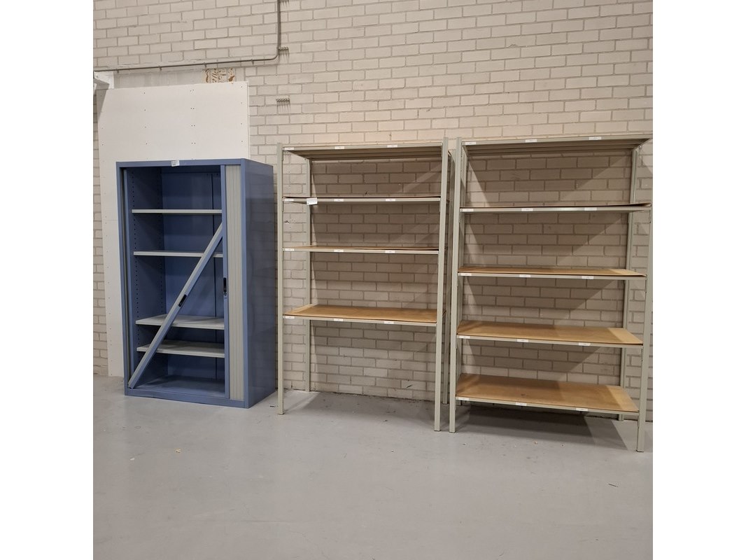 Product: lameldeurkast met 2x stelling Specificaties: lameldeurkast hxbxd ca. 200x120x47cm, deur kapot stelling hxbxd ca. 209x128x61cm
