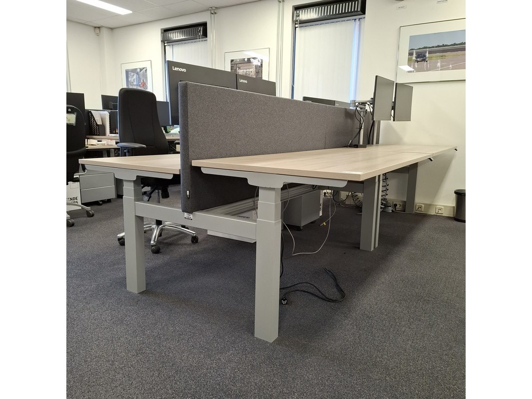 Product: Elektrisch duoblok sta-zit bureau Afmeting: lxbxh ca. 160x168x70/129cm Specificaties: Exclusief monitors en andere randzaken