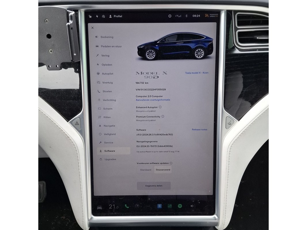 Merk: Tesla Product: Personenauto BouwJaar: 2017 Specificaties: Basis kenmerken Kenteken: PP-250-K Datum eerste toelating: 16 augustus 2017 Vervaldatum APK: 23 januari 2026 (verlopen) Afgelezen tellerstand: 184732 km Brandstof: Elektrisch Carrosserie: Hatchback Aantal zitplaatsen: 6 Aantal sleutels: 1 Motor & Milieu Max. vermogen: 315 kW (428 PK) Transmissie: Automaat Maten & Gewichten Wielbasis: 297 cm Massa rijklaar: 2474 kg Max. massa voertuig: 3021 kg