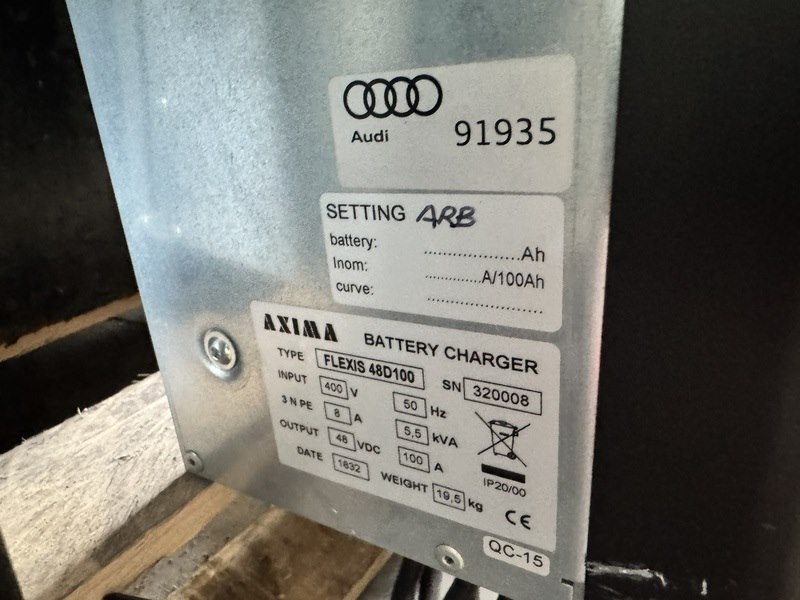Merk: Axima Product: Acculader Kleur: zwart Afmeting: L80 x B30 x H20 cm Conditie: gebruikt Specificaties: Slimme lader voltage van 12 tot 48 volt input 400V output max 48V 100A s/n. 320008 de stekker zit er niet op of zal moeten nagekeken. De lader kunnen worden gebruikt voor de andere aangeboden kavels tot 48 volt accu.
