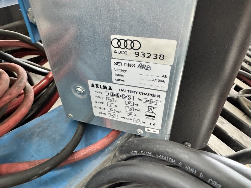 Merk: Axima Product: Acculader Kleur: zwart Afmeting: L80 x B30 x H20 cm Conditie: gebruikt Specificaties: Slimme lader voltage van 12 tot 48 volt input 400V output max 48V 100A s/n. 332831 de stekker zit er niet op of zal moeten nagekeken. De lader kunnen worden gebruikt voor de andere aangeboden kavels tot 48 volt accu.
