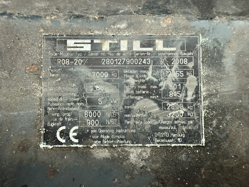 Merk: Still Product: Trek Auto Kleur: oranje Materiaal: Staal Afmeting: L350 x B180 x H180 cm BouwJaar: 2008 Conditie: gebruikt Specificaties: Trek auto trek kracht 6000 nm 5 KW. Batterij mist. 80 V gewicht zonder accu, 2440 Kg serie nummer: 280127900266
