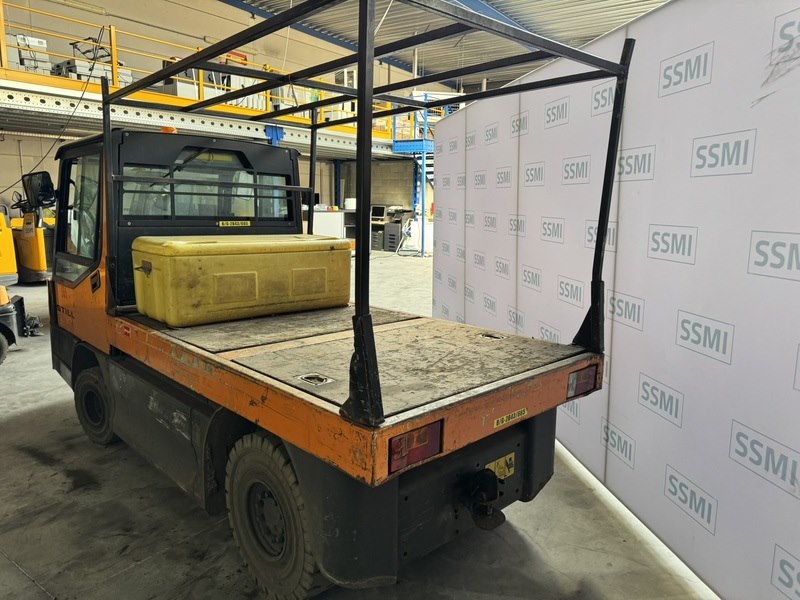 Merk: Still Product: Trek Auto Kleur: oranje Materiaal: Staal Afmeting: L350 x B180 x H180 cm BouwJaar: 2008 Conditie: gebruikt Specificaties: Trek auto trek kracht 6000 nm 5 KW. Batterij mist. 80 V gewicht zonder accu, 2440 Kg serie nummer: 280127900266