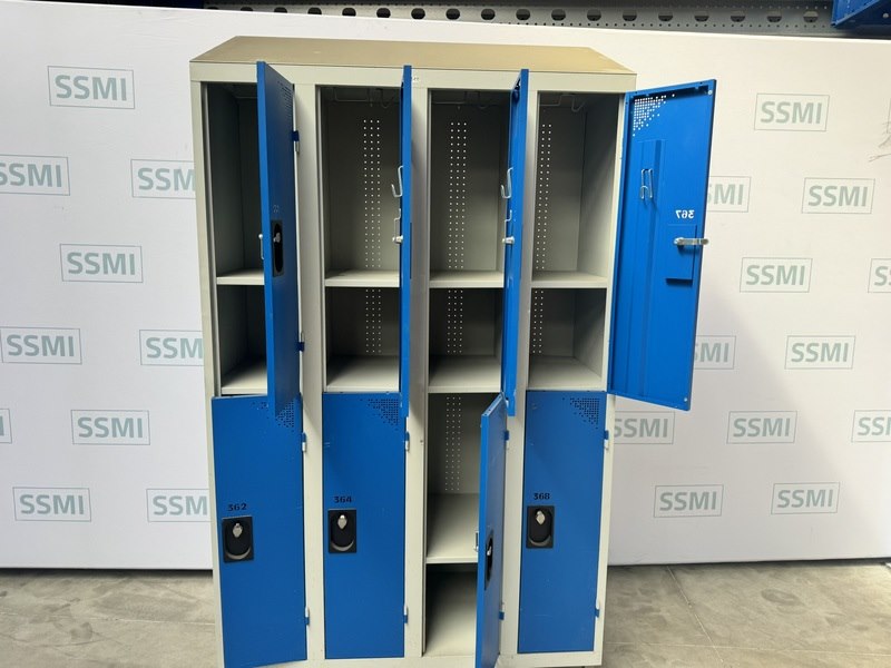 Product: Kluisjeskast Kleur: blauw Materiaal: staal Afmeting: L120 x B51 x H212 cm Conditie: gebruikt Specificaties: Kleedruimte kluisjes