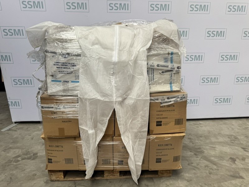 Product: Schilders stofpak Kleur: wit Afmeting: XL Specificaties: in doos ongebruikte schilders stofpakken op pallet ca 32 dozen met 25 stuks in de doos.