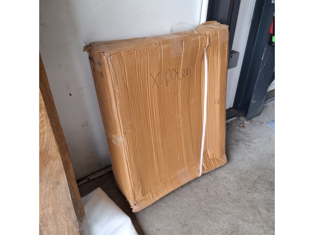 Product: Boomstam eettafel Afmeting: lxb ca. 200x96/104 cm BouwJaar: 2026 Conditie: Nieuw Specificaties: Met set X poten