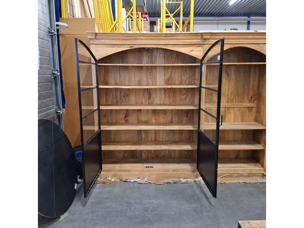 Product: Buffetkast mangohout 400 cm 1 geheel Afmeting: hxbxd ca. 200x395x45 cm BouwJaar: 2026 Conditie: Nieuw