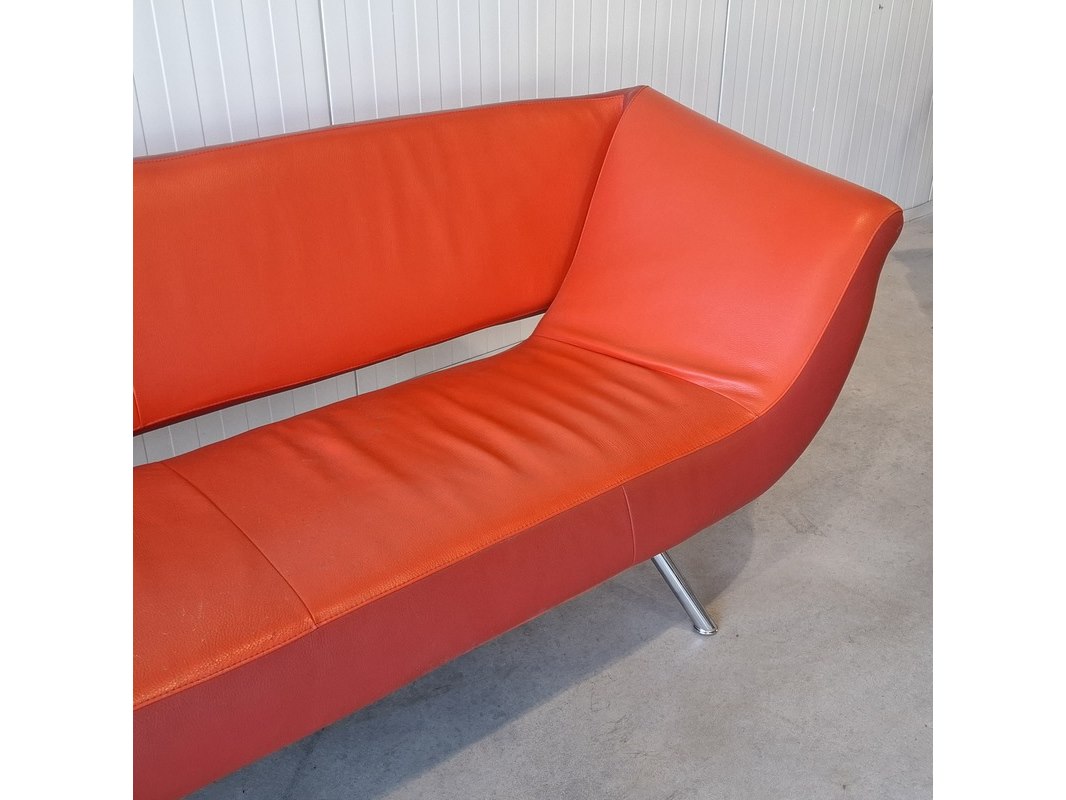 Merk: Leolux Product: Design bank Kleur: rood Afmeting: ca 220 cm breed Conditie: gebruikt