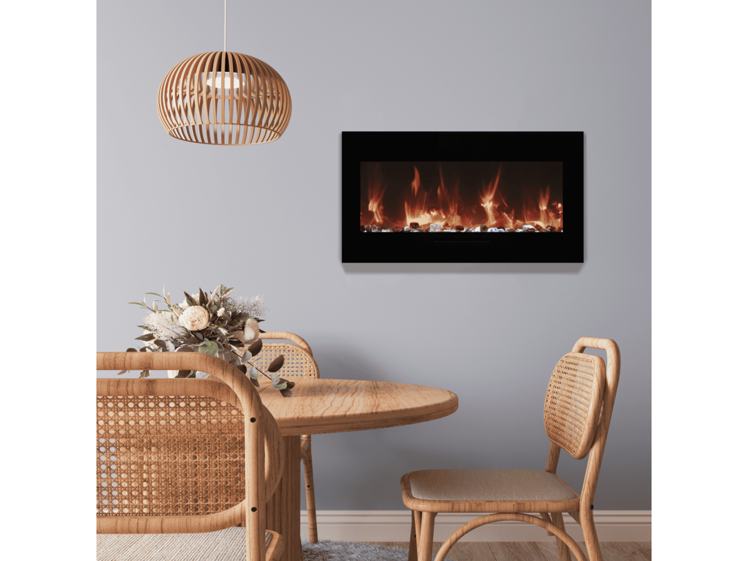 Merk: Remii Product: Elektrische sfeerhaard Kleur: Zwart Materiaal: Metal Afmeting: Appliance Width 59 1/4” or 150.6 cm Appliance Height 19 7/8” or 50.6 cm Appliance Depth 6 1/8” or 15.5 cm BouwJaar: 2017 Conditie: Nieuw Specificaties: The WM-FML-STL the amantii wall mount electric fireplace series features a deep charcoal colored steel surround. The steel surround has aesthetic proportions and features a touchpad with a numerical temperature display. Heat is emitted through the face below the glass viewing area allowing for a flush mount installation and is the idea wall mount electric fireplace. If recessing is not an option, this model is also wall-mountable and perfect in apartments or in places where renovation or construction is not an option. Available in 7 sizes, you’ll find a WM-FML-STL fireplace that is perfect for any space in your home, business, or commercial space. Can be built in flush or wall mounted with included brackets. Heat is emitted from a single slot in the face of the surround. State of the art flame presentation: Vibrant, multi-colored state of the art flame presentation – change from Yellow to Orange to Red with just a click of the remote. Stove bright charcoal metallic finished steel surround Touchpad with temperature display Latest LED light technology 13 colors of surround back‐lighting Hard‐wire ready Thermostat hard‐wire ready Can produce up to 5000 BTU of heat, enough to heat up to 500 sq feet Plug on left side Heat can operate without flame Single remote control for flame, surround back‐lighting & heater included.