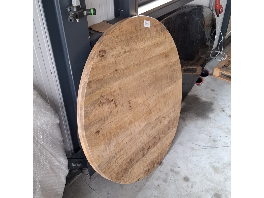 Product: Eettafel blad | Mangohout Afmeting: Ca. 120 cm diameter BouwJaar: 2026 Conditie: Nieuw