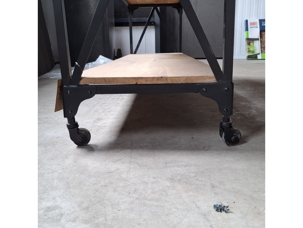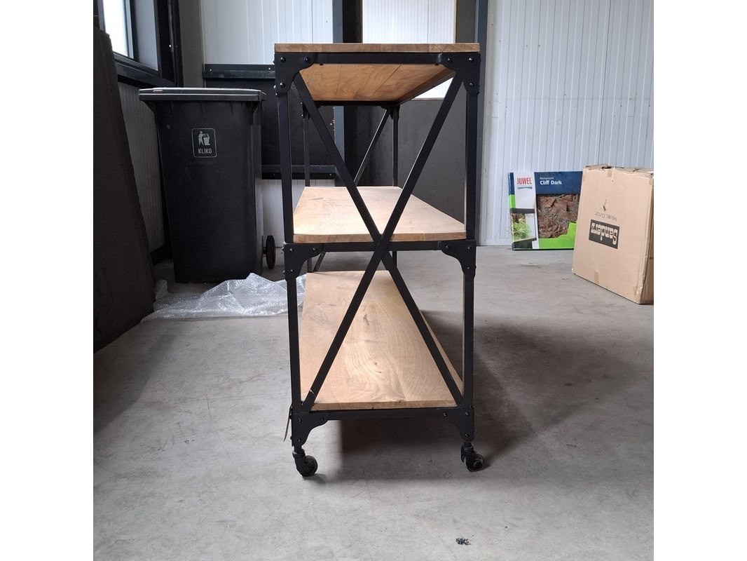 Product: Sidetable, verrijdbaar | Mangohout Afmeting: 160x45x90 BouwJaar: 2026 Conditie: Nieuw