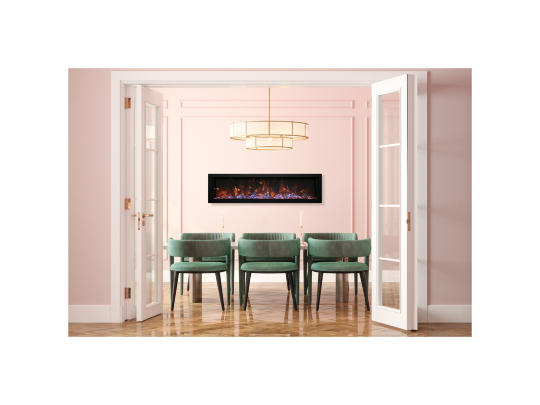 Merk: Remii Product: Elektrische sfeerhaard Kleur: Zwart Materiaal: Metal Afmeting: Appliance Width 88 5/8” or 225.2 cm Appliance Height 29 1/2 ” or 75 cm Appliance Depth 12 5/8” or 32.2 cm BouwJaar: 2017 Conditie: Nieuw Specificaties: The BI-DEEP-XT features an Extra Tall viewing area that is 18” in height! That is 6” taller than our other Panorama models. The Panorama series by Amantii Electric Fireplaces offers an exceptional full view viewing area, providing an immersive and captivating experience for users. This feature allows you to enjoy the realistic flames and glowing embers from a wider perspective, creating a stunning visual focal point in any room. The true trimless design of the Panorama series sets it apart from other built-in units in the market. With no visible trim or frame, the fireplace seamlessly blends into the surrounding wall, creating a sleek and modern appearance. This trimless feature adds a touch of elegance and sophistication to your living space. The full view viewing area of the Panorama series ensures that every angle of the flames is visible, making it perfect for installation in central areas of a room. Whether you’re enjoying a cozy night in or hosting a gathering, everyone can appreciate the beauty and warmth of the fireplace from different vantage points. All models are rated for either indoor or outdoor use Incredible 17 3/4″ high viewing area Black glass side panels Mirrored media tray State of the art flame presentation: Vibrant, multi-colored state of the art flame presentation – change from Yellow to Orange to Red with just a click of the remote. Ambient Canopy lighting in 13 colors DEEP models have 2 flame sets 2 Stage heater Hardwire ready Thermostat hard-wire ready Flame can operate without heat Choose from 10 colors of canopy and ember bed lighting to illuminate decorative media from below and above Single remote control for flame, ambient canopy lighting & heater included Full frame viewing – Fireplace allows for choice of finishing material to come right to the glass Optional black steel surround comes in the box – it is up to you if you want to use it or not. Can produce up to 5000 BTU of heat, enough to heat up to 500 sq feet