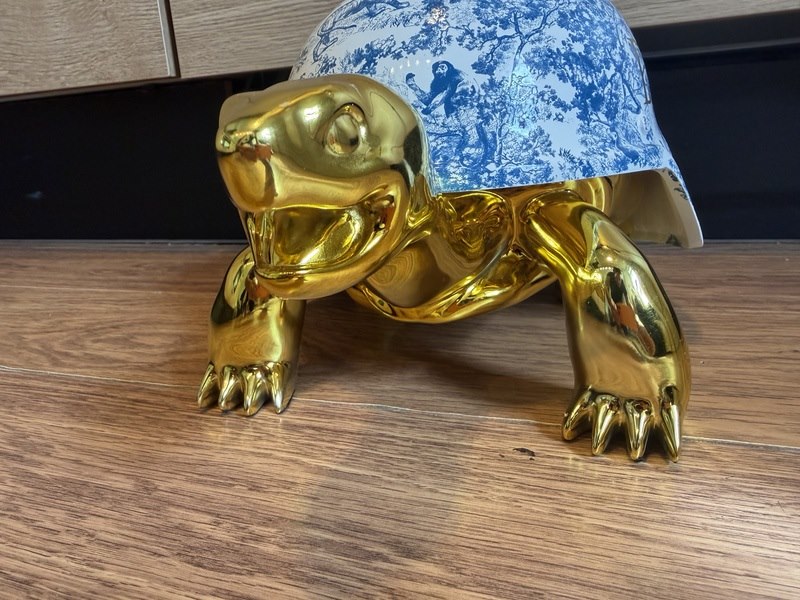 Merk: Lior24 Product: Schildpad beeld "Dior" Kleur: Blauw Materiaal: Resin Afmeting: 45cm Conditie: Nieuw Specificaties: Schildpad beeld met Dior Logo