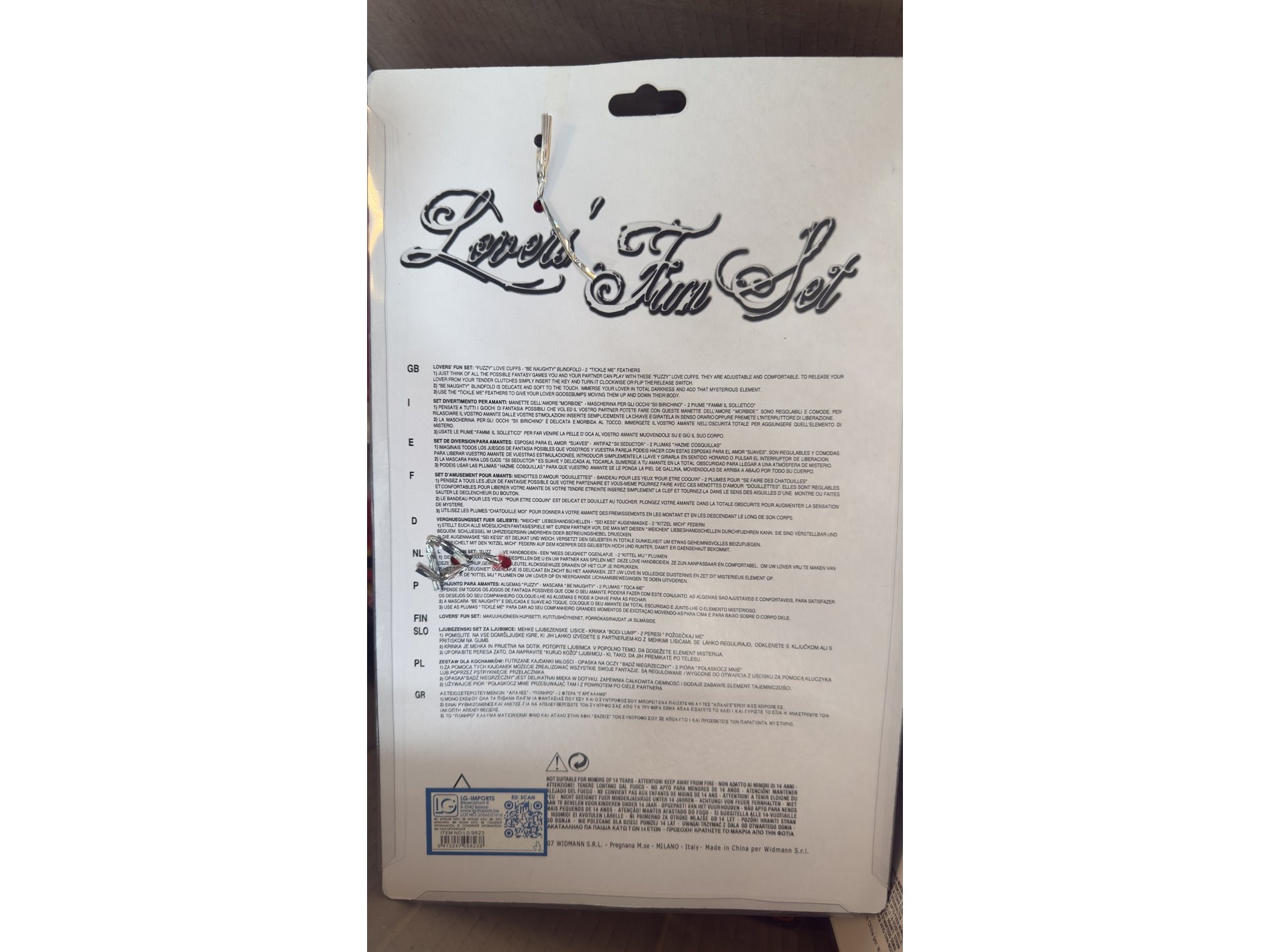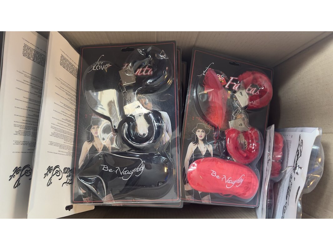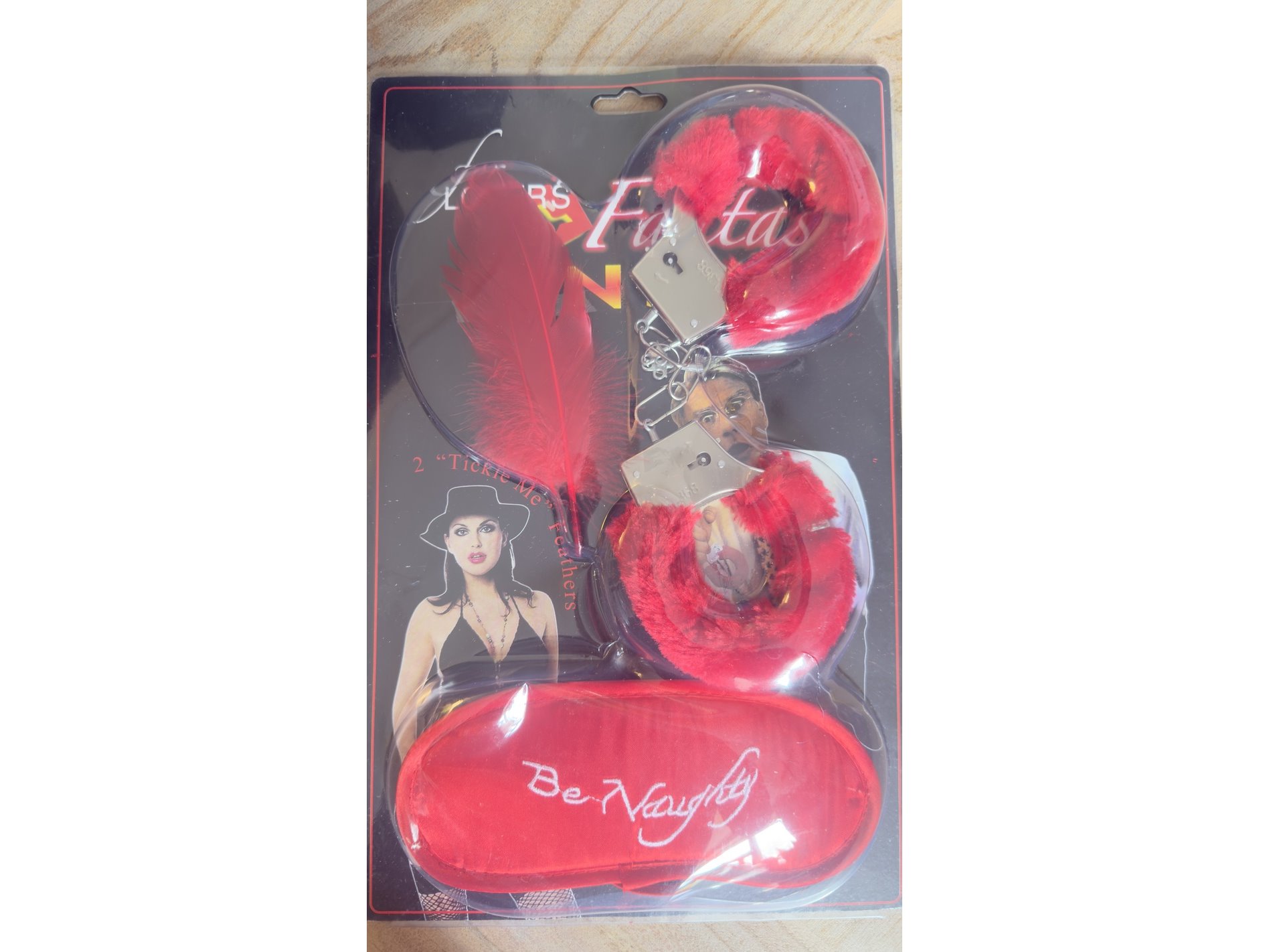 Merk: Widmann / Lovers Fun Set Product: Naughty set Conditie: Nieuw Specificaties: Inhoud per set: • Blinddoek (“Be Naughty”) • Handboeien (met sleutel) • Veren (tickle me feathers) Materiaal: • Textiel (blinddoek, veren) • Kunststof (handboeien) • Metaal (sluiting handboeien) • Compleet cadeauset / novelty product • Individueel verpakt (retail verpakking) • Geschikt als cadeau of feestartikel • Lichtgewicht en eenvoudig in gebruik • Mix van kleuren (rood en zwart)