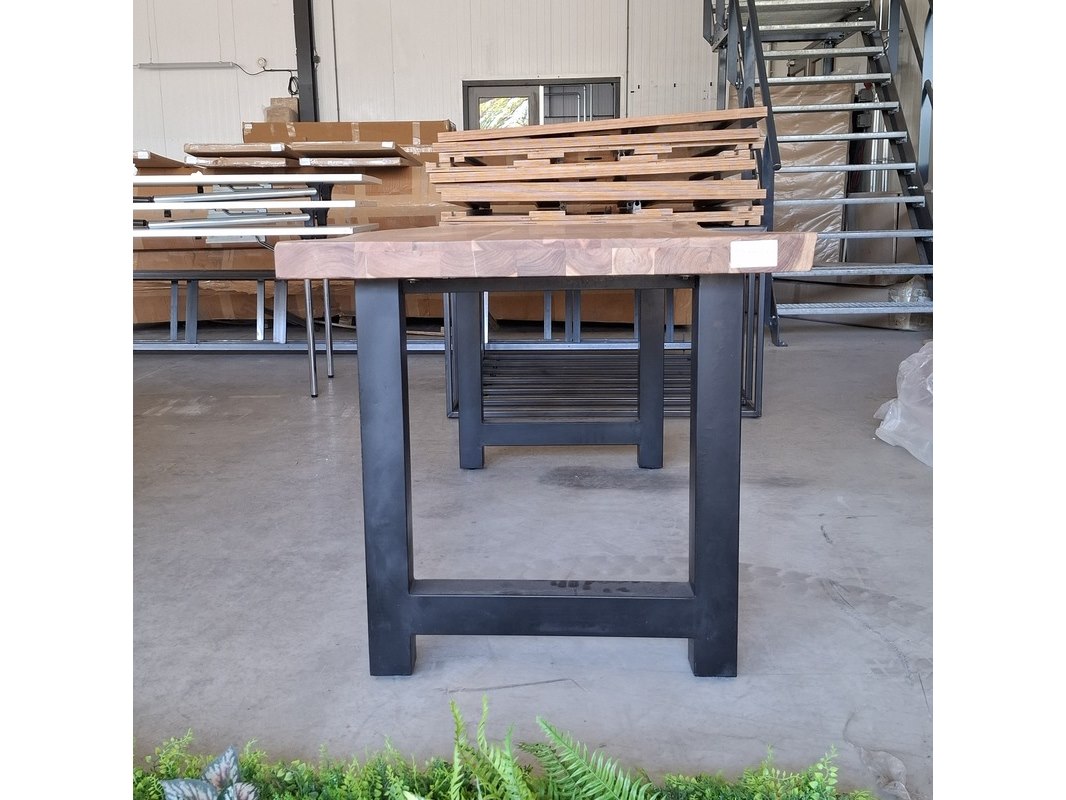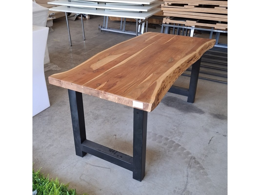 Merk: Wood industries Product: Eettafel | Suar Afmeting: 165x85x76 cm Specificaties: Met stalen poten